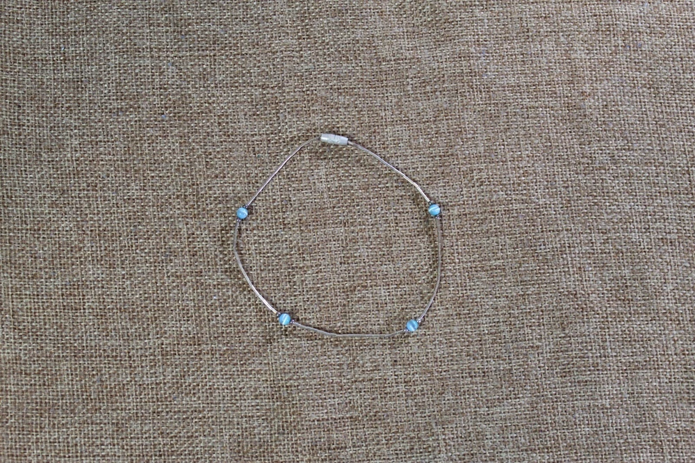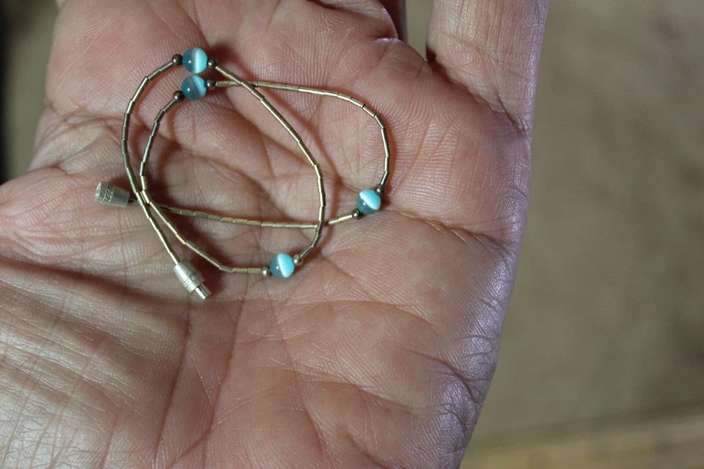 9" sterling silver ankle or wrist bracelet with twist closure and blue swirly beaded accents. Dainty yet durable. This is new old stock from a closed down boardwalk surf shop. If late 80s, 1990s, and early 2000s is your vibe, be sure to check back as I work through this mountain of vintage merchandise. Thanks for looking!