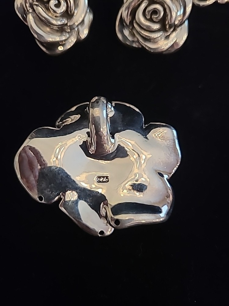 This sterling silver puffy rose bud bracelet (8in), pendant, and earrings (pierced)set is a perfect gift for special occasions like anniversaries or birthdays. The set is crafted from high-quality 925 sterling silver, ensuring durability and long-lasting beauty. The elegant design of the rose bud motif adds a touch of nature-inspired charm to the set, making it a versatile and stylish accessory for any outfit. Whether for yourself or as a gift, this set is sure to impress with its intricate detailing and classic silver color.