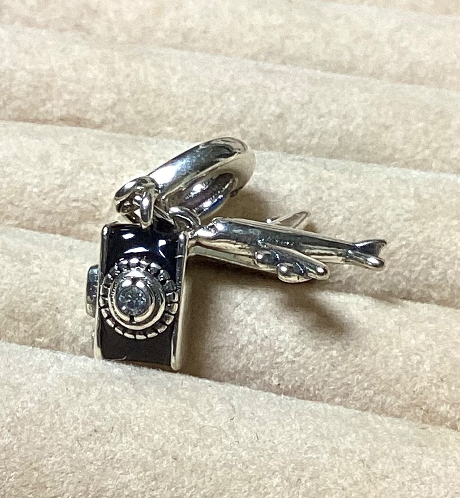 Silver Travel Aeroplane Passport Camera Airplane Charm Unbranded charm that fits charm bracelet Pre-loved in Excellent Used Condition s925 Please see my other items which you may also be interested in