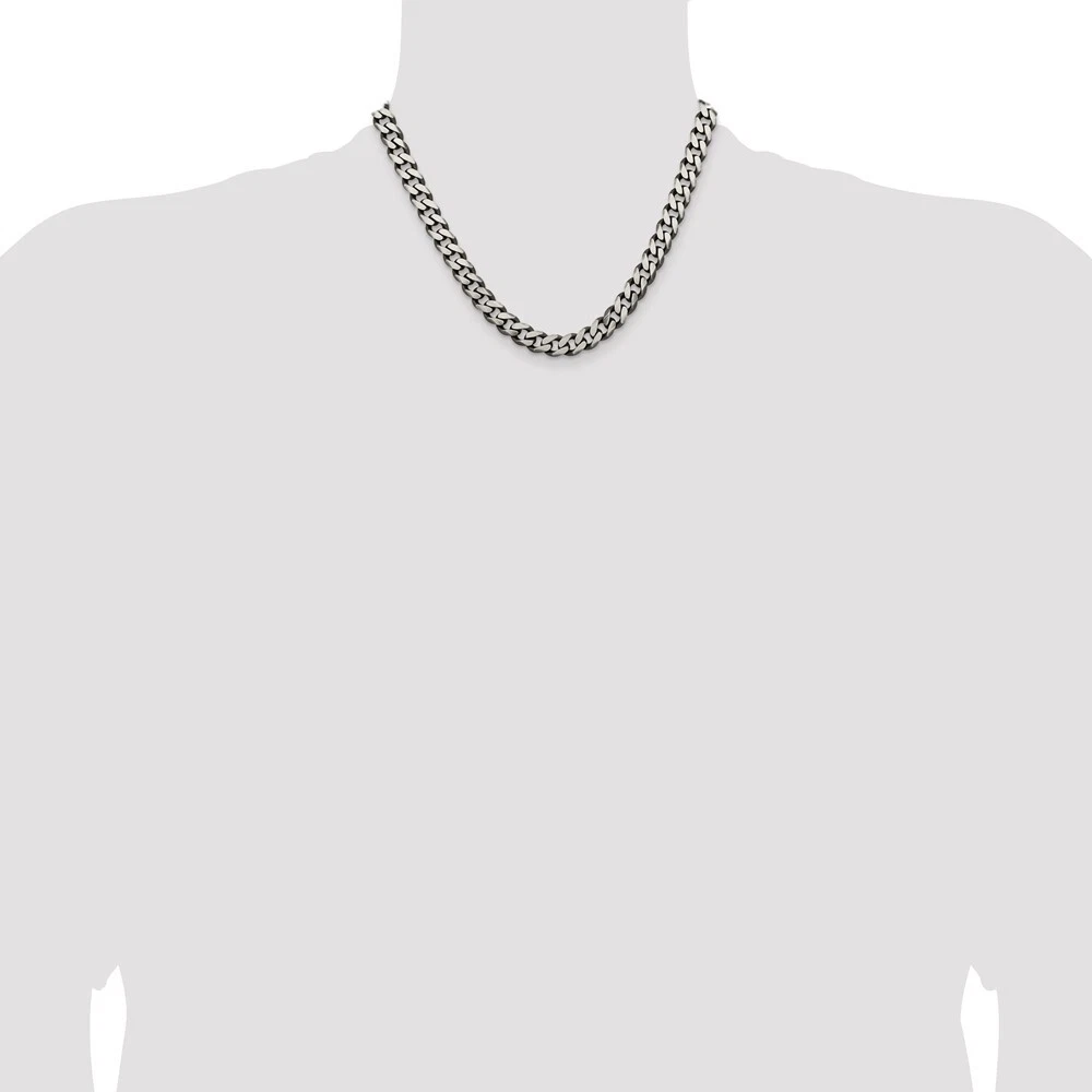 Material: Primary - Purity:925|Finish:Antiqued|Length of Item:18 in|Chain Length:18 in|Chain Type:Curb|Chain Width:9 mm|Clasp /Connector:Lobster|Clasp Thickness (Female end):4.2 mm|Clasp Thickness (Male end):4 mm|Clasp Width (Female end):9.1 mm|Clasp Width (Male end):9 mm|Feature:Solid|Manufacturing Process:Casted|Material: Primary:Sterling Silver|Width of Item:9 mm|Product Type:Jewelry|Jewelry Type:Necklaces|Sold By Unit:Each|Necklace Type:Chain Styles|Gender:Men's|Material: Primary - Color:White All weights and measurements are approximate and may vary slightly from the listed information. Welcome to diamond_6720 Payments We accept all Ebay approved payment. Please sent the payment to us within 8 days after the auction has ended, or you will have unpaid case auto open by eBay. Shipping Policy We will ship all items within 1 business days of purchase during the work week (M-F) excluding holidays. If you order on Friday, your order will be shipped the following business day. Tracking will be provided when it becomes available. We will only ship to a PayPal Verified Address. Please make sure your address is current and correct. If the information does not match, your order may be canceled. Buyers are responsible for all customs, duties and taxes for your respective countries. Delivery times for International Shipping will vary. California Buyers Pay 9.0% Tax on all orders. case auto open by eBay. Return Policy & Exchange Returns or Exchange are accepted. Buyer must contact us within 30 days after the item is received. Item must be returned in unworn and resalable condition. We will only issue a refund for the purchase price, excluding any shipping fees. If we are at fault, we will provide a full refund. Buyer is responsible for all return shipping costs. BUYERS FEEDBACK If you have any concerns regarding your purchase, please contact us via eBay Message, we assure you that a satisfactory resolution will be reached. Your feedback is very important to us Do remember to give us 5 star rating(*****) if you are satisfied with our product & service .