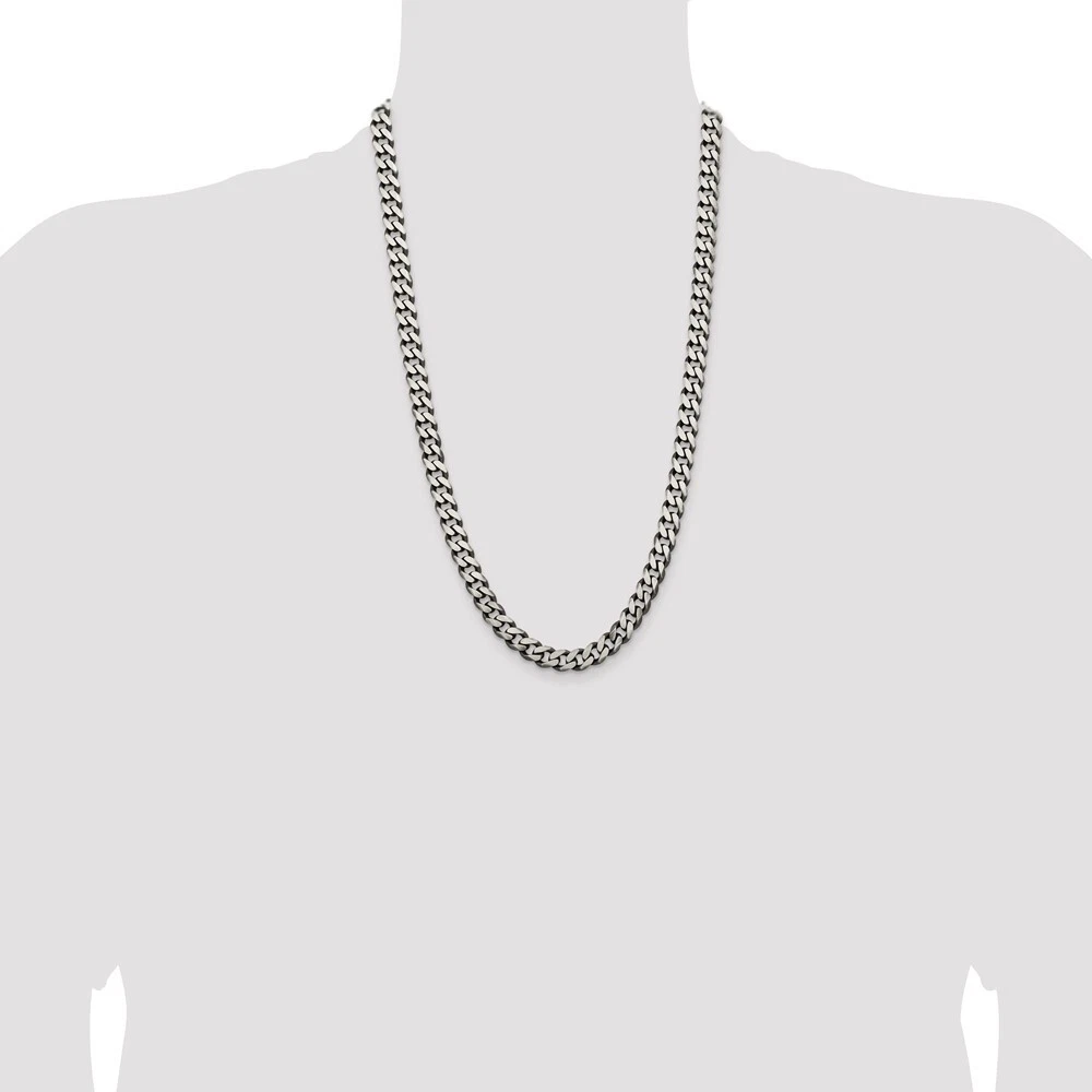 Material: Primary - Purity:925|Finish:Antiqued|Length of Item:26 in|Chain Length:26 in|Chain Type:Curb|Chain Width:9 mm|Clasp /Connector:Lobster|Clasp Thickness (Female end):4.2 mm|Clasp Thickness (Male end):4 mm|Clasp Width (Female end):9.1 mm|Clasp Width (Male end):9 mm|Feature:Solid|Manufacturing Process:Casted|Material: Primary:Sterling Silver|Width of Item:9 mm|Product Type:Jewelry|Jewelry Type:Necklaces|Sold By Unit:Each|Necklace Type:Chain Styles|Gender:Men's|Material: Primary - Color:White All weights and measurements are approximate and may vary slightly from the listed information. Welcome to diamond_6720 Payments We accept all Ebay approved payment. Please sent the payment to us within 8 days after the auction has ended, or you will have unpaid case auto open by eBay. Shipping Policy We will ship all items within 1 business days of purchase during the work week (M-F) excluding holidays. If you order on Friday, your order will be shipped the following business day. Tracking will be provided when it becomes available. We will only ship to a PayPal Verified Address. Please make sure your address is current and correct. If the information does not match, your order may be canceled. Buyers are responsible for all customs, duties and taxes for your respective countries. Delivery times for International Shipping will vary. California Buyers Pay 9.0% Tax on all orders. case auto open by eBay. Return Policy & Exchange Returns or Exchange are accepted. Buyer must contact us within 30 days after the item is received. Item must be returned in unworn and resalable condition. We will only issue a refund for the purchase price, excluding any shipping fees. If we are at fault, we will provide a full refund. Buyer is responsible for all return shipping costs. BUYERS FEEDBACK If you have any concerns regarding your purchase, please contact us via eBay Message, we assure you that a satisfactory resolution will be reached. Your feedback is very important to us Do remember to give us 5 star rating(*****) if you are satisfied with our product & service .