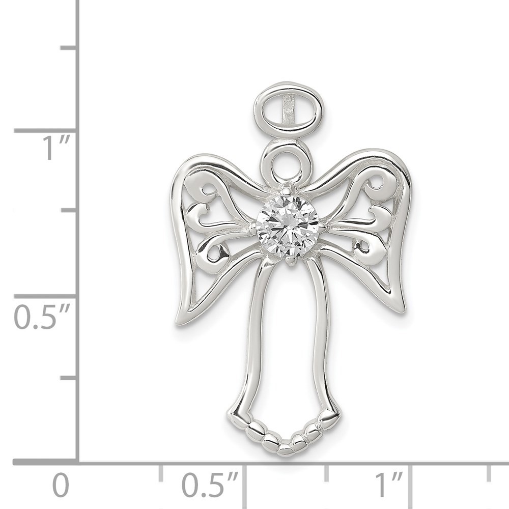Rhodium-Plated Sterling Silver CZ Heart Pendant 2.7g 0.99 Inch