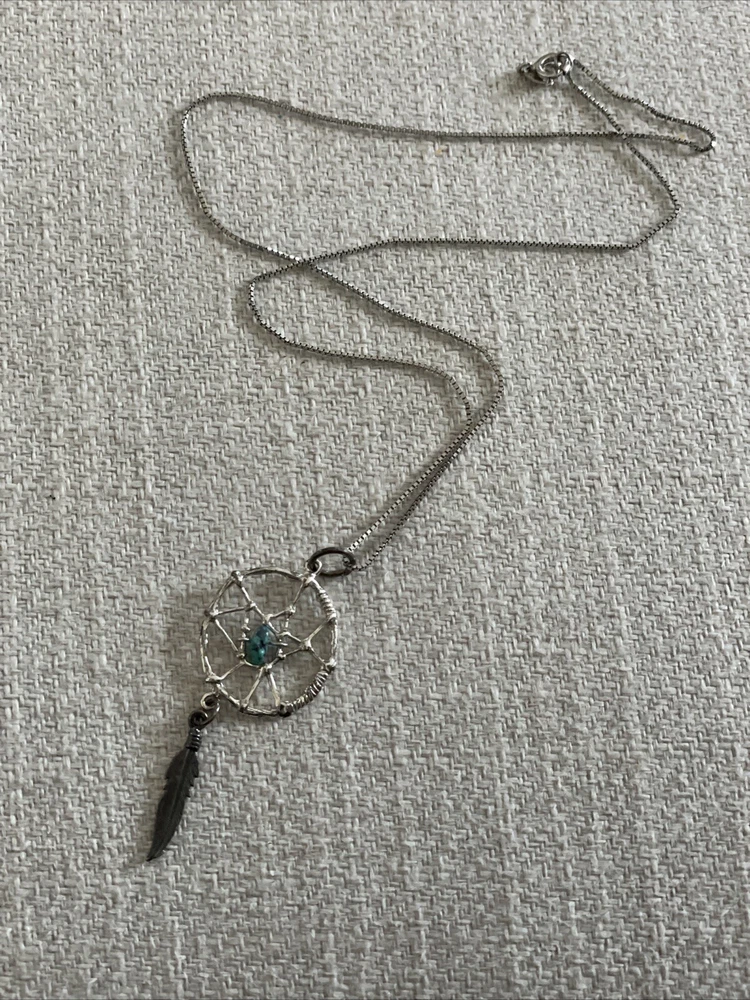 Sterling Silver Chain Dream Catcher Feather Turquoise pendant necklace Boho. Condition is Pre-owned. Shipped with USPS Ground Advantage.