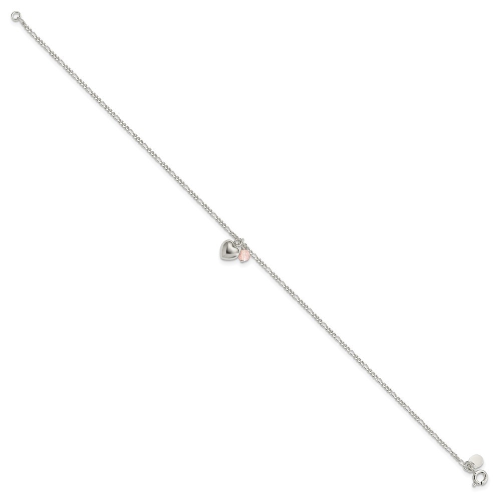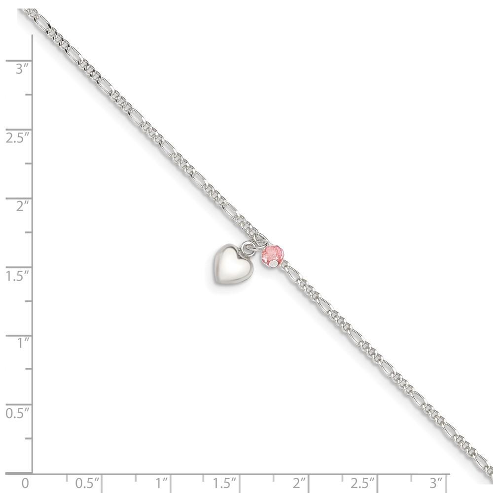 925 Silver Antique Heart Pink Crystal Dangling Anklet 9" 2g