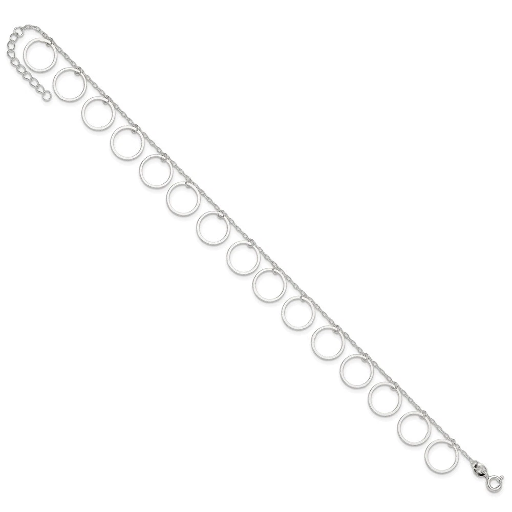 925 Silver Ocean Wave Anklet 9 Inch w/1in Extender 3.2g
