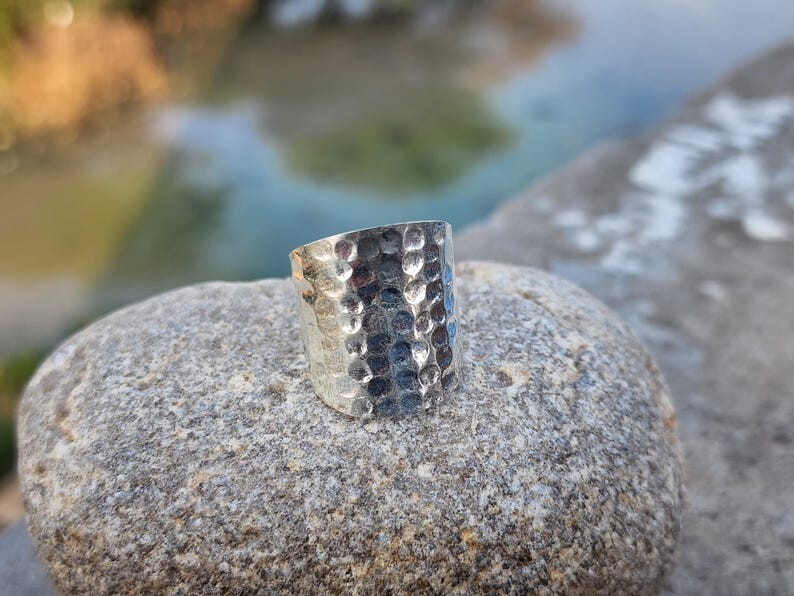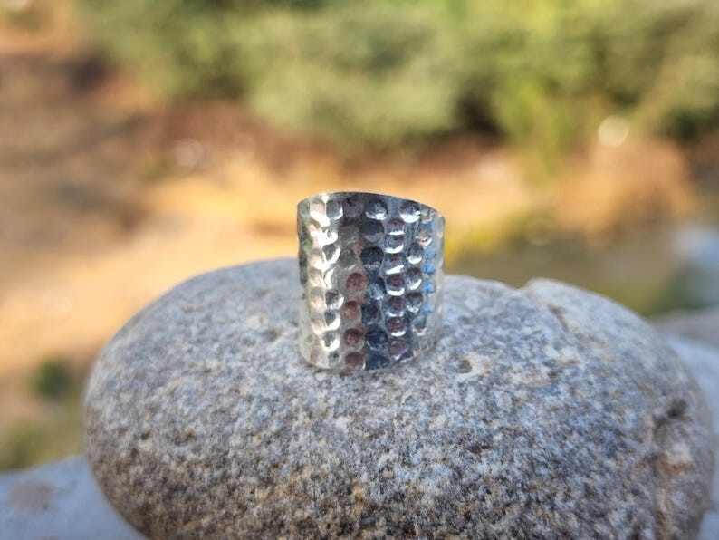 Welcome To My Shop 925 Sterling Silver Long Hammered Ring For Women, Silver Band Ring, Handmade Ring, Women Ring, Wide Band Ring, Christams Gift, Gift For Her All my Designs are original. Size - All Size Ring This Ring is for Women You will receive a Ring like the one in the pictures This Ring have 925 Stamp Suitable for use in everyday situations, or can also be used as a gift. Unique design will make a special attraction for the wearer. I make my jewelry with passion and love. The perfect gift for a Special occasion Wholesale Orders Accept on Wholesale Price All Pieces Have 925 Stamp