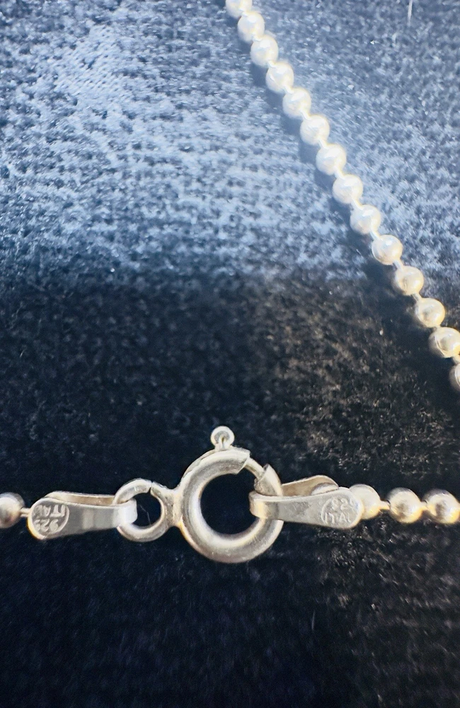 Sterling Silver 925 Mixed Metal Angel Wing Pendant Ball Beaded Necklace 20” Wings are gold tone Angel tested Sterling not marked Necklace is 925 Italy 9.6 g