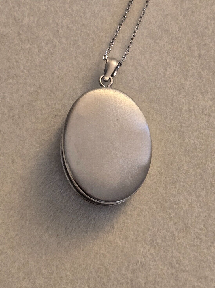 LADIES STERLING SILVER OVAL SHAPE LOCKET A pretty little sterling silver locket. The locket is has design on half the front and is oval in shape. The back has a satin finish. This locket measures approximately 23.8mm high x 20.55mm in width. These measurements do not include the loop style bail. The chain measures 18 inches in length and 1mm in diameter. This chain has a spring ring clasp. Great to keep pics of two lovers inside. This is a new item that we are closing out. Condition Description : At PPMAA, we always do our best to describe every item accurately and to the best of our ability. Condition grading can be very subjective, so please take a look at our large, closeup images and grade each item yourself prior to bidding. Also, please take time to review every picture and read the entire description for each item prior to contacting us with questions, or bidding on an item. Combined Shipping Available : If you are the winner of multiple auctions, please do not pay until you receive an invoice reflecting combined shipping . We issue combined shipping invoices within 24 hours of the close of the auction. Feedback : Once you have received your item and have left feedback, we will happily provide feedback for you as well. About Pearlman's Jewelers and PPMAA Thank you for looking at PPMAA and we hope you enjoy what you will find to be a ever growing selection of interesting items. Pearlman’s Precious Metals, Arts & Antiquities (PPMAA) is the estate buying division of Pearlman's Jewelers. You may know us at Pearlman's Jewelers. Pearlman's also has an estate and closeout jewelry store on eBay which concentrates solely on fine estate jewelry. PPMAA concentrates on every other category of items we buy. You will, over time, see a diverse collection of auction and store items from coins, sports, books, and you name it for we buy a tremendous amount of just about anything interesting and historical. We carry from the common to very rare and the inventory changes daily. We invite you to ask questions on anything you see or don't. We are also buyers so if you have something interesting let us know and we would be happy to discuss. PPMAA is everything Pearlman's has been for the last 88 years, and we hope you enjoy our offerings. -- Bill Pearlman Combined Shipping Policy Please notify us with your intention of winning multiple auctions. We will combine shipping for multiple auction wins for up to five business days. Buyer will pay the greatest shipping charge in a combined group, with an adjustment for some types of items (i.e. large, heavy, fragile, or irregularly-shaped pieces) and/or large quantities of similar items should any apply. Please wait to pay until you have received a revised invoice, sent on the business day following the close of the auction. International Shipping Policy While our listings say we'll only ship within the United States, we will ship to wherever you are, pending international shipping regulations. To receive a shipping estimate, please send us a message with the item(s) you intend to win, and your full shipping address. We will respond by the end of the next business day with an estimate. For international mailings, a minimum charge of $35.00 will be assessed . This charge only covers shipping and handling, and may increase based on value, weight, etc. It does not include import duties, fees, or any other charges designated by the country of import. Please check with your country's customs office to determine what these additional costs will be prior to bidding or buying. Be advised, however, that shipping internationally does require these types of additional fees, but that we will do our best to get you the most affordable cost. Please see below for payment on international shipments. Payment Policy Unless otherwise notified regarding combining auctions that have yet to end, payment must be received within five business days of the close of an auction, or the piece will be relisted. Feel free to call or email us with any questions or to ask us to hold some items for you. For international auction wins, we can only accept payment via bank wire for auctions with a combined value greater than $150.00 US.