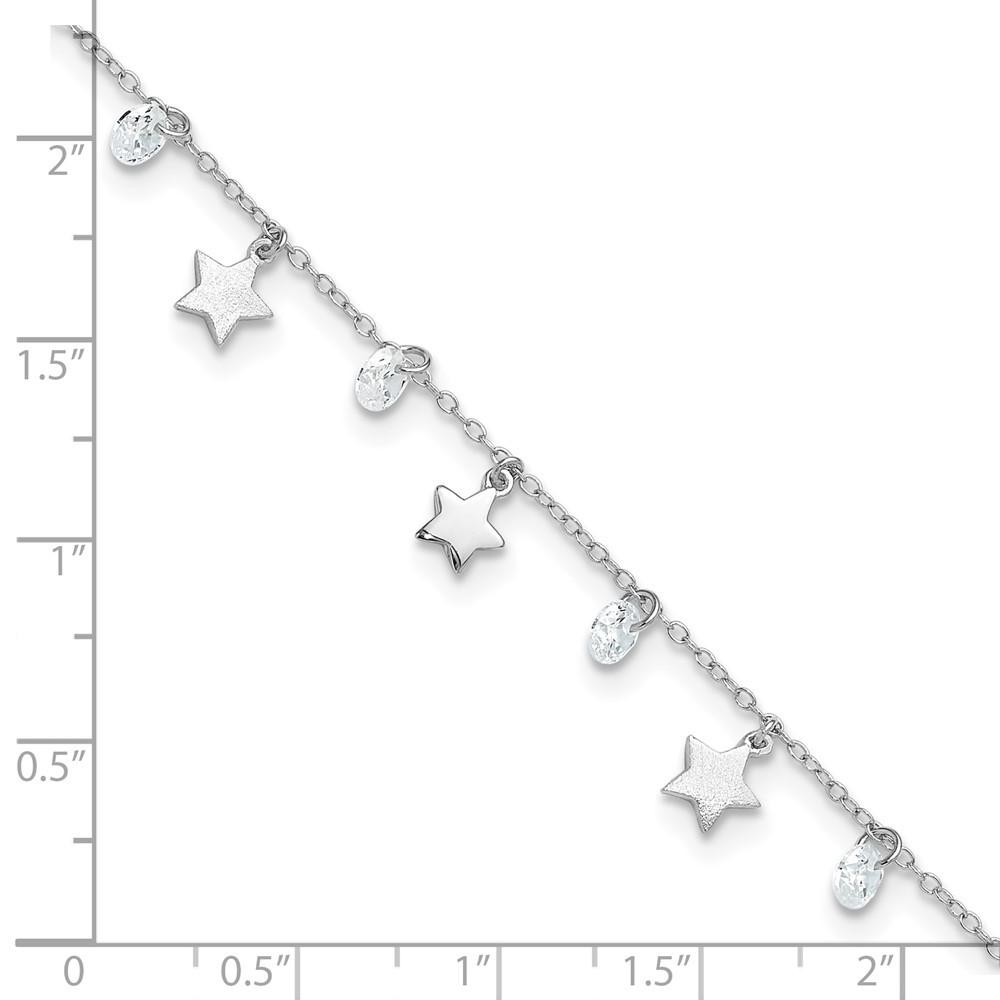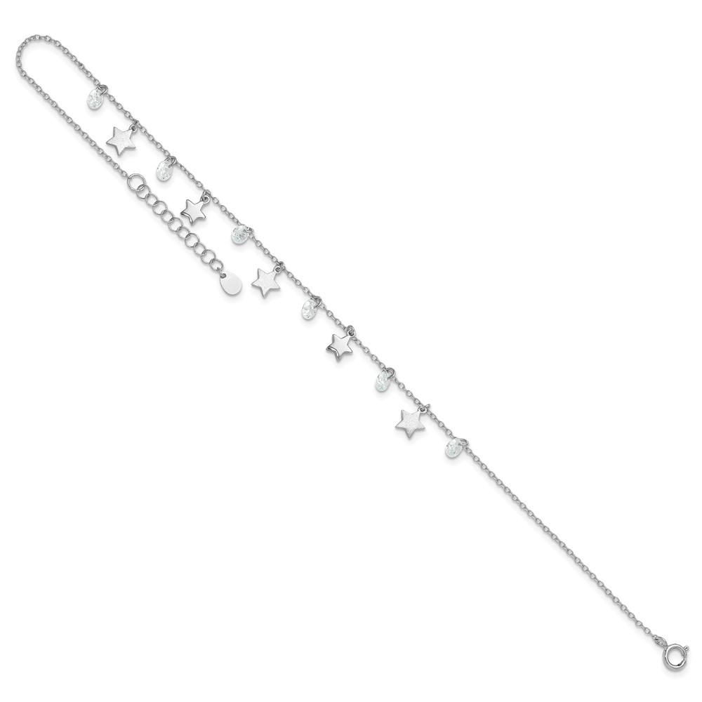 $ 45.46925 Silver CZ Starfish Anklet 9in w/1in Ext 1.27g Polished