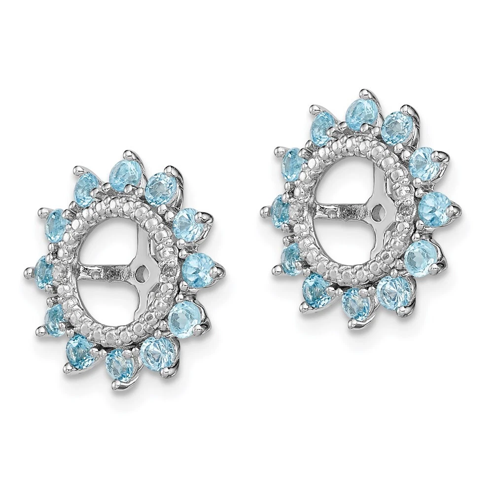Features: Material Purity:925 Stone Type_1:Swiss Blue Topaz Stone Type_2:Diamond Stone Color_1:Blue Stone Quantity_1:24 Stone Quantity_2:4 Length of Item:14 mm Plating:Rhodium Stone Setting_1:Prong Set Stone Setting_2:Prong Set Stone Weight_1:0.984 ctw (total weight) Stone Weight_2:0.02 ctw (total weight) Feature:Solid Manufacturing Process:Casted Material: Primary:Sterling Silver Completeness:Complete (all stones included) Stone Shape_1:Round Stone Shape_2:Round Stone Size_1:2 mm Stone Size_2:1 mm Stone Treatment_1:Irradiation Width of Item:14 mm Jewelry Type:Earrings Sold By Unit:Pair Gender:Women's Material Color:White Earring Type:Earring Jackets & Enhancers Plating Color:Silver Tone Earring Jacket Opening:6.25 mm Stone Creation Method_1:Natural Stone Creation Method_2:Natural Birthstone Month:(12) December All weights and measurements are approximate and may vary slightly from the listed information. Welcome to diamond_6720 Payments We accept all Ebay approved payment. Please sent the payment to us within 8 days after the auction has ended, or you will have unpaid case auto open by eBay. Shipping Policy We will ship all items within 1 business days of purchase during the work week (M-F) excluding holidays. If you order on Friday, your order will be shipped the following business day. Tracking will be provided when it becomes available. We will only ship to a PayPal Verified Address. Please make sure your address is current and correct. If the information does not match, your order may be canceled. Buyers are responsible for all customs, duties and taxes for your respective countries. Delivery times for International Shipping will vary. California Buyers Pay 9.0% Tax on all orders. case auto open by eBay. Return Policy & Exchange Returns or Exchange are accepted. Buyer must contact us within 30 days after the item is received. Item must be returned in unworn and resalable condition. We will only issue a refund for the purchase price, excluding any shipping fees. If we are at fault, we will provide a full refund. Buyer is responsible for all return shipping costs. BUYERS FEEDBACK If you have any concerns regarding your purchase, please contact us via eBay Message, we assure you that a satisfactory resolution will be reached. Your feedback is very important to us Do remember to give us 5 star rating(*****) if you are satisfied with our product & service .