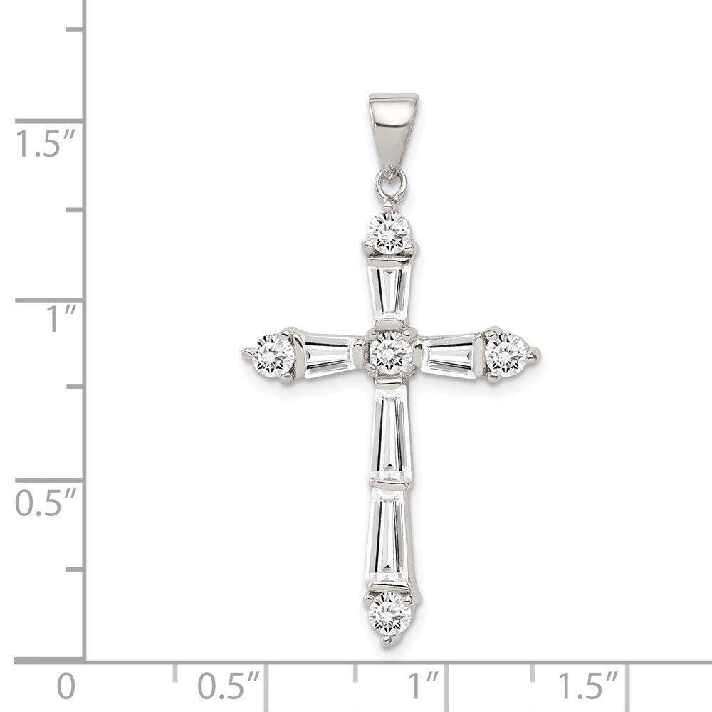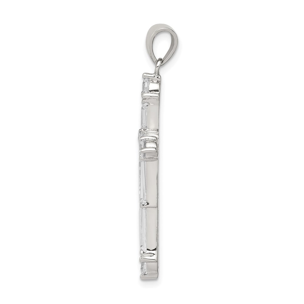 Sterling Silver Polished Cubic Zirconia Heart Cross Pendant 0.59gm L-23 mm