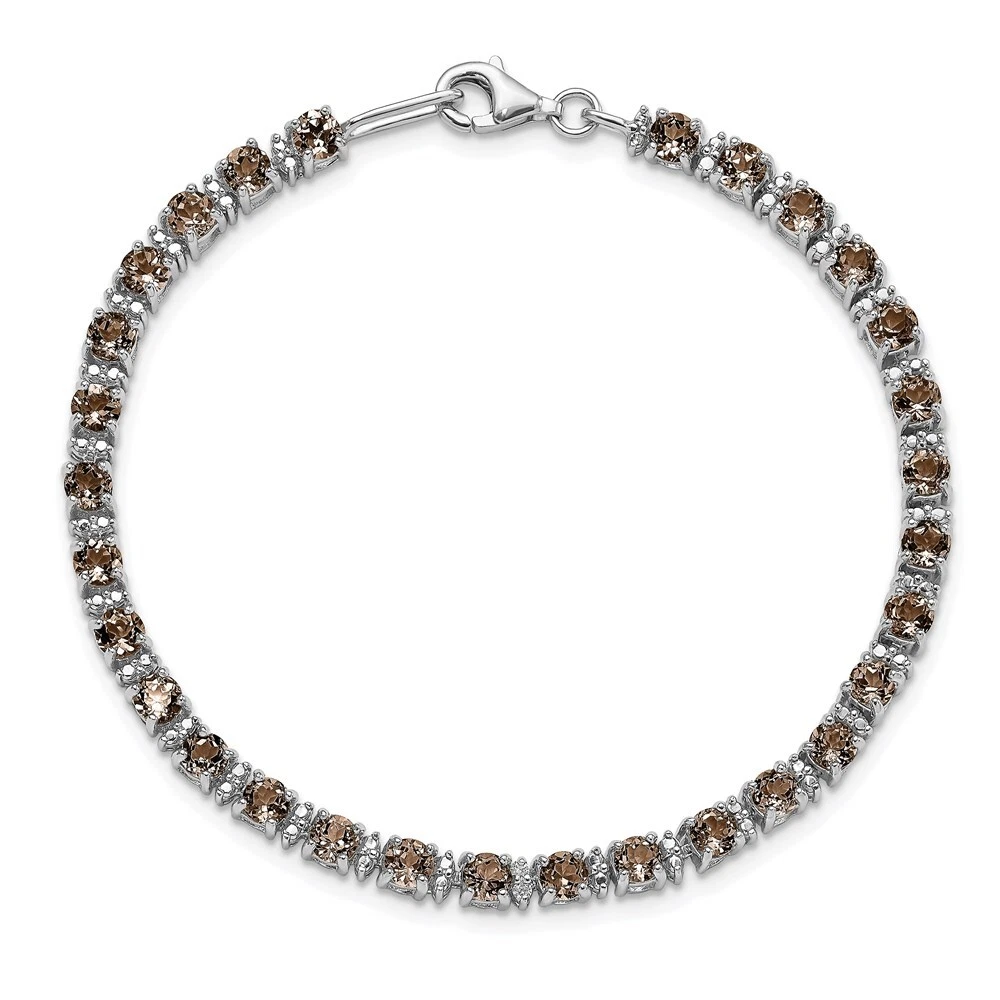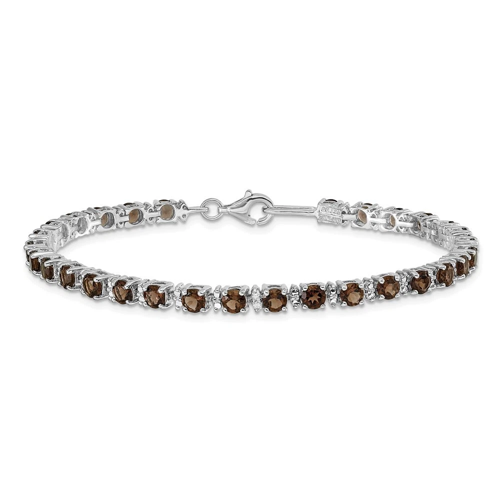 Features: Material Purity:925 Finish:Polished Stone Type_1:Smoky Quartz Stone Type_2:Diamond Stone Quantity_1:30 Stone Quantity_2:2 Length of Item:7 in Plating:Rhodium Stone Setting_1:Prong Set Stone Weight_1:0.135 ct Stone Weight_2:0.01 ct Chain Length:7 in Chain Width:4 mm Clasp /Connector:Lobster (Fancy) Feature:Solid Manufacturing Process:Casted Material: Primary:Sterling Silver Stone Shape_1:Round Stone Shape_2:Round Stone Size_1:3.5 mm Stone Treatment_2:Heating Jewelry Type:Bracelets Bracelet Type:Gemstones Material Color:White Stone Creation Method_2:Natural All weights and measurements are approximate and may vary slightly from the listed information. Welcome to diamond_6720 Payments We accept all Ebay approved payment. Please sent the payment to us within 8 days after the auction has ended, or you will have unpaid case auto open by eBay. Shipping Policy We will ship all items within 1 business days of purchase during the work week (M-F) excluding holidays. If you order on Friday, your order will be shipped the following business day. Tracking will be provided when it becomes available. We will only ship to a PayPal Verified Address. Please make sure your address is current and correct. If the information does not match, your order may be canceled. Buyers are responsible for all customs, duties and taxes for your respective countries. Delivery times for International Shipping will vary. California Buyers Pay 9.0% Tax on all orders. case auto open by eBay. Return Policy & Exchange Returns or Exchange are accepted. Buyer must contact us within 30 days after the item is received. Item must be returned in unworn and resalable condition. We will only issue a refund for the purchase price, excluding any shipping fees. If we are at fault, we will provide a full refund. Buyer is responsible for all return shipping costs. BUYERS FEEDBACK If you have any concerns regarding your purchase, please contact us via eBay Message, we assure you that a satisfactory resolution will be reached. Your feedback is very important to us Do remember to give us 5 star rating(*****) if you are satisfied with our product & service .
