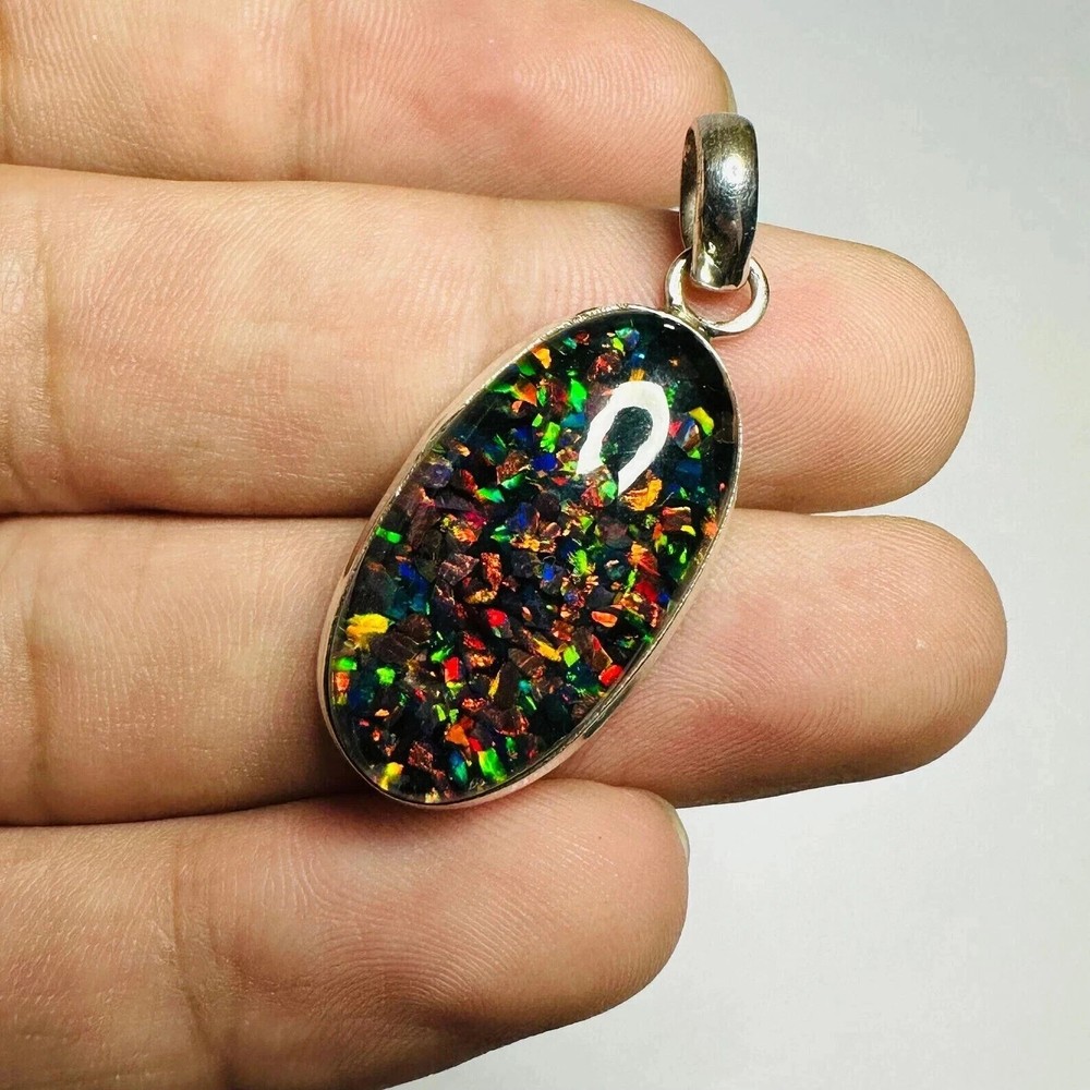 $ 5.81Sterling Silver Triplet Oval Opal Gemstone Handmade Pendant Jewelry 28.65 Ct