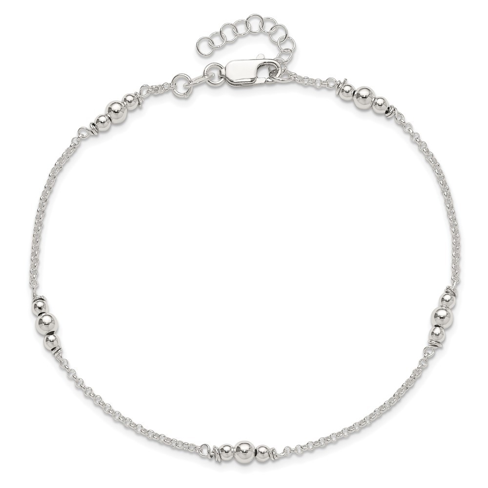 925 Sterling Silver Polished Fancy Anklet 9" w/1in ext. 2.8gm