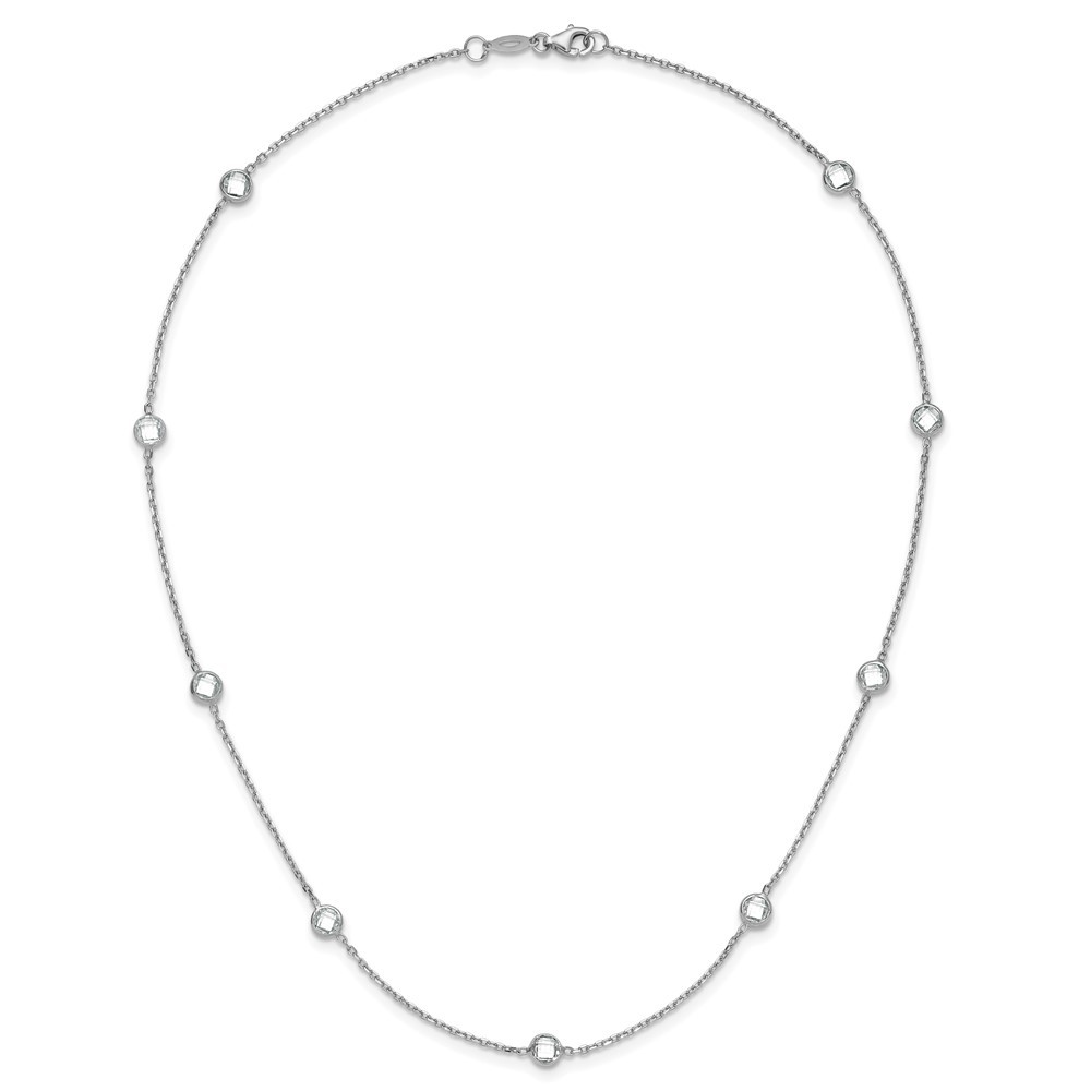 Features: Material Purity:925 Finish:Polished Stone Type_1:Cubic Zirconia (CZ) Stone Color_1:Clear Stone Quantity_1:9 Length of Item:18 in Plating:Rhodium Stone Setting_1:Bezel Set Chain Length:18 in Chain Type:Cable Chain Width:1.28 mm Charm/Element Length:5.31 mm Charm/Element Width:5.31 mm Clasp /Connector:Spring Ring Clasp Thickness (Female end):0.66 mm Clasp Thickness (Male end):1.18 mm Clasp Width (Female end):2.13 mm Clasp Width (Male end):4.89 mm Material: Primary:Sterling Silver Stone Shape_1:Round Stone Treatment_1:Synthetic Width of Item:1.28 mm Jewelry Type:Necklaces Necklace Type:Fancy Necklace Pendant/Charm Type:CZ Material Color:White Number of Elements:9 Stone Cut_1:Checkerboard Stone Creation Method_1:Synthetic All weights and measurements are approximate and may vary slightly from the listed information. Welcome to diamond_6720 Payments We accept all Ebay approved payment. Please sent the payment to us within 8 days after the auction has ended, or you will have unpaid case auto open by eBay. Shipping Policy We will ship all items within 1 business days of purchase during the work week (M-F) excluding holidays. If you order on Friday, your order will be shipped the following business day. Tracking will be provided when it becomes available. We will only ship to a PayPal Verified Address. Please make sure your address is current and correct. If the information does not match, your order may be canceled. Buyers are responsible for all customs, duties and taxes for your respective countries. Delivery times for International Shipping will vary. California Buyers Pay 9.0% Tax on all orders. case auto open by eBay. Return Policy & Exchange Returns or Exchange are accepted. Buyer must contact us within 30 days after the item is received. Item must be returned in unworn and resalable condition. We will only issue a refund for the purchase price, excluding any shipping fees. If we are at fault, we will provide a full refund. Buyer is responsible for all return shipping costs. BUYERS FEEDBACK If you have any concerns regarding your purchase, please contact us via eBay Message, we assure you that a satisfactory resolution will be reached. Your feedback is very important to us Do remember to give us 5 star rating(*****) if you are satisfied with our product & service .