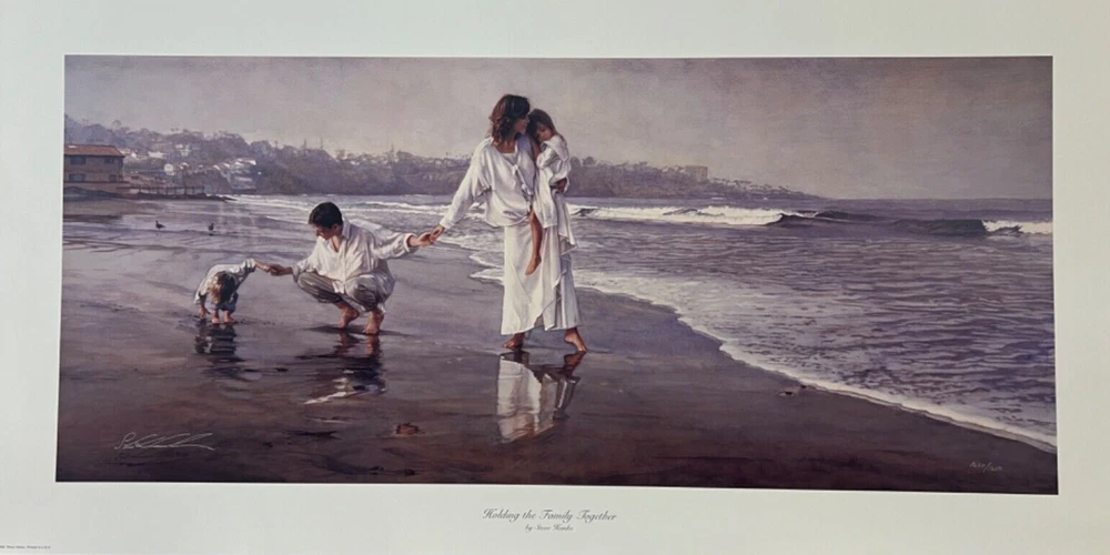 STEVE HANKS " Holding the Family Together " 1650 Limited Edition Print 14.75" Height x 34" Width image size MINT CONDITION Steve Hanks Although teachers often cited his artistic ability, Steve Hanks’ main interest while growing up around San Francisco was sports. As a young teenager, Hanks pursued surfing and tennis with passion. He eventually tired of a steady diet of competitive tennis, but continued to surf, finding a spiritual connection with the ocean. “Surfing had a strong influence on my paintings,” he says. “The ocean often appears in my work, because I have such strong feelings for it.” Although it was apparent early on that he had talent, Hanks refused to do the required assignments in his high school art class and earned a grade of C in the class. “To prove I was good, I did a one-man show at the high school and sold my first painting to another art teacher,” he says. After high school Hanks enrolled in summer session commercial art courses at the Academy of Art in San Francisco. “The only way I could convince my parents to let me go was to say I was going into commercial art,” he says. “I didn’t even know what that was!” He did well in his commercial art classes, but it was a life drawing class that captured his interest. He focused his energy on the study of anatomy and figure drawing and transferred into the California College of Arts and Crafts in Oakland, California. He graduated in the 1960s with a Bachelor of Fine Arts degree, and then moved back to New Mexico in search of a home art gallery. Initially, he drew in pencil and painted in oils. His paintings were impressionistic while his drawings were more realistic. Eventually, an allergic reaction to oils forced him to experiment with watercolors. Using the techniques learned from other mediums, he found he could create watercolors as “finished” as oils. Deeply affected by the emotions, shifting attitudes and music of the 1960s, the music of 60s icon Bob Dylan often accompanies Hanks as he paints in his studio today. Steve Hanks’ paintings are much more than endearing images of women and children. Rather than conveying a specific message through his paintings, Hanks prefers to explore memories and emotions. “All art is an escape to somewhere you want to be or a feeling you want to have," Hanks says. "People see different things in my paintings because we all have different backgrounds and feelings.” Hanks highly collected nudes convey an introspective solitude that prompts the viewer to think about his or her own life and path. “Women occupy a special niche in my sensitivity. They express more storytelling ability. There’s more magic in them,” he says. Art jurors began recognizing the quality of his work in 1973. Steve Hanks won the Arts for the Parks Marine Art Award of Excellence in 1990 and 1994, and has been one of the Arts for the Parks top 100 artists since 1989. In 1991, Steve Hanks received the National Watercolor Society Merit Award and the National Academy of Western Art awarded him the Gold Medal in 1992. Since 1993, he has been one of U.S. Art Magazine's top ten American artists. When the Pacific Rim show in Seattle, WA decided to open the show up to a wider variety of art in 1999, they selected Steve as Artist of the Year. Steve was one of five winners selected to the U.S. Art Hall of Fame 2000. He was named as one of the top 25 selling artists in the June, 2002 issue of Decor magazine. The 7th Annual Andre Agassi Grand Slam for Children chose Steve as their Feature Artist in 2002. This is a limited edition Print signed and numbered by Steve Hanks . It is in perfect, mint condition. It has its certificate of authenticity and write up on this incredible artist. This Print is guaranteed to arrive MINT and in perfect condition. We offer free shipping, completely insured everywhere in N. America! -------------------------------------------------------------------------------------------------------------------------------------------------------------------------------------------- Phone us toll free anywhere in N. America - anytime ! We are authorized dealers with almost every publisher in N. America and know we can list world class artists at remarkable prices !! We offer FREE pick up of winning items at our Canmore Art gallery located in Canada's beautiful Rocky Mountains. Shipping is done in some of the best built, strong boxes ever seen - always completely insured . Any problems and we ship a new piece immediately - no cost to you!! Think we have superior service, come check out our ART COUNTRY CANADA Gallery on your next visit to BANFF NATIONAL PARK . We will send an email within 24 hours of the auction ending. Canadian residents add GST. We accept paypal and anyone can call the gallery toll-free with a visa or mastercard. We try to ship the same day, but some items may ship the following week. Shipping Information All items are completely insured to arrive in MINT condition! We ship in some of the strongest boxes in the industry! Art Country Canada Gallery Art Country Canada Rocky Mountain Art Gallery 729 Main Street Canmore , Alberta T1W 2B2 Mill Pond Press Dealer / Somerset Publishing Dealer / Wild Wings Dealer and many more TERMS OF SERVICE EBAY is one side of our business, having a fine art gallery we are able to custom frame most items in our gallery. We work hard to do business the old fashioned way, we treat all customers as if they are family. We answer emails courteously and are fair in all our dealings. We have a toll free number for easy service. Please feel free to contact us at anytime, with any question or comment. We make every effort to answer all emails as quickly as possible. WORLDWIDE SHIPPING We sell and ship worldwide, so please email us for a quote to any location, we dropship to any address if it is a gift. We charge shipping based on the Canadian Postal System and all items are sent fully insured. METHODS OF PAYMENT We accept Paypal which ac