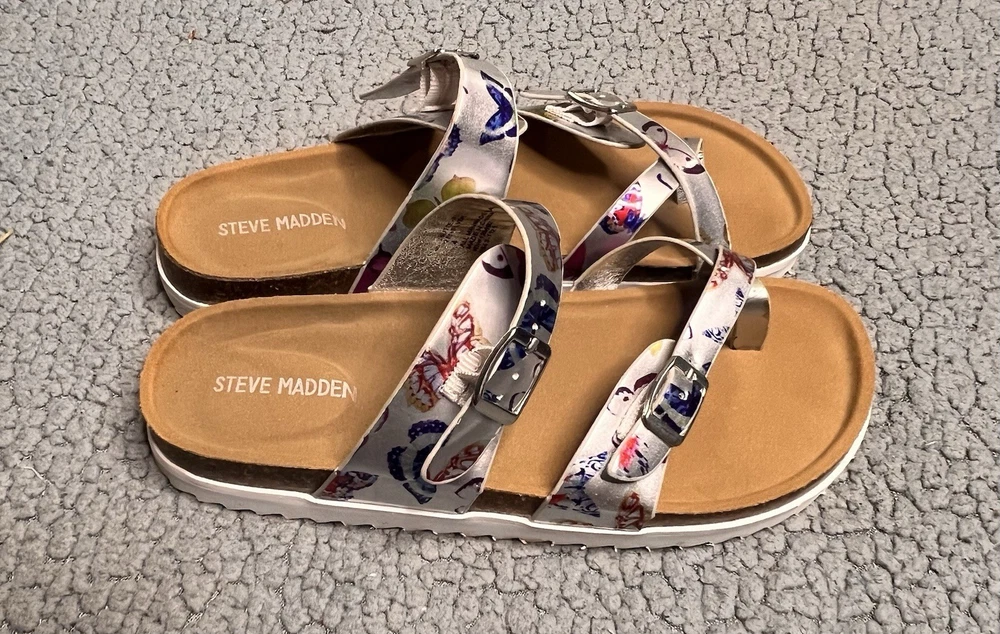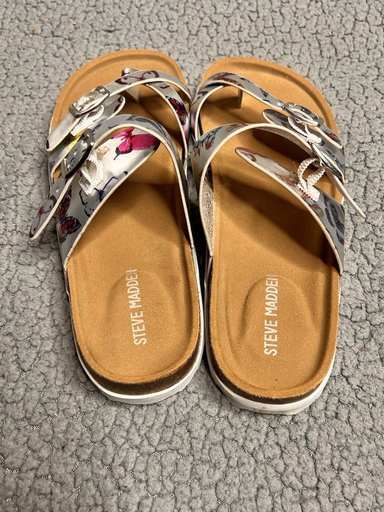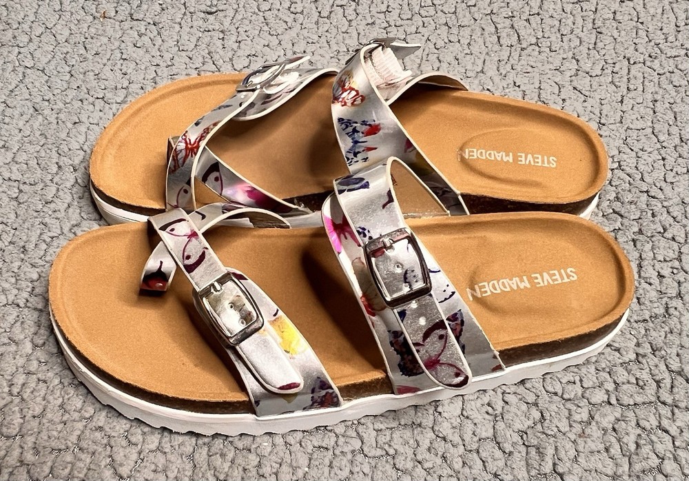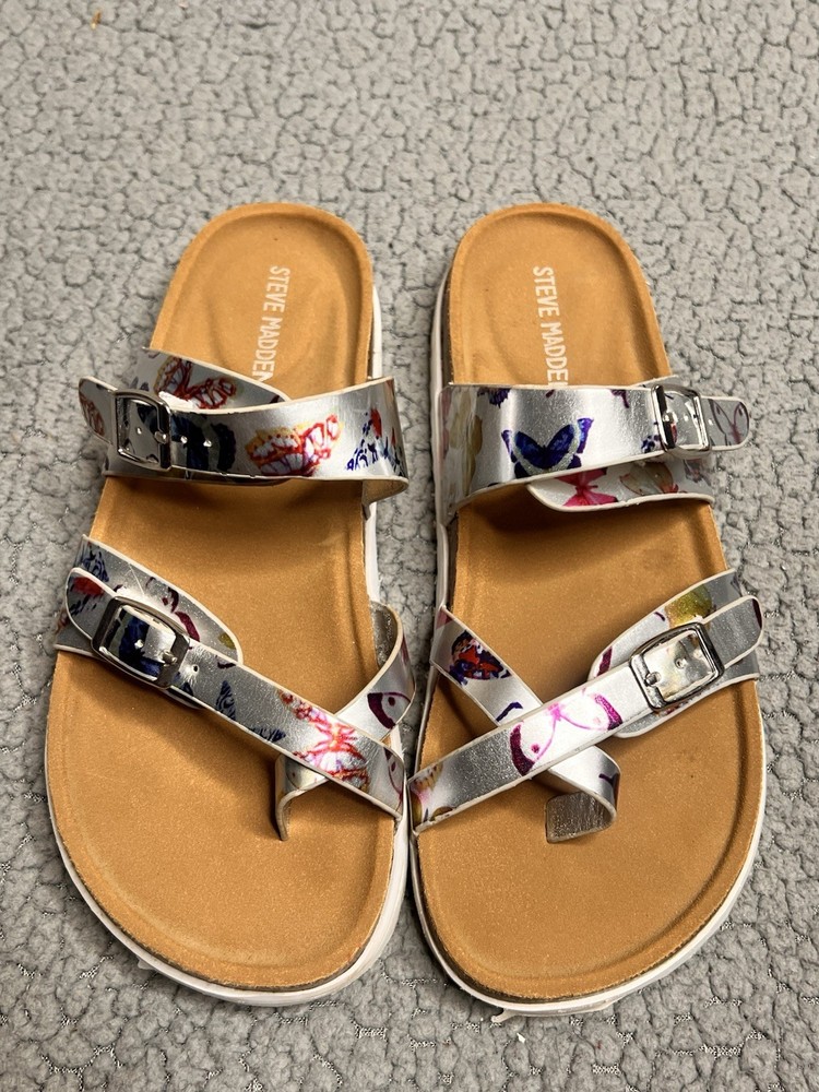 Steve Madden Maui Slides Silver With Butterflies Girls Size 4 Sandals good condition any flaws are shown in photos SKU(A883)