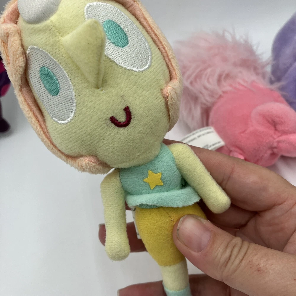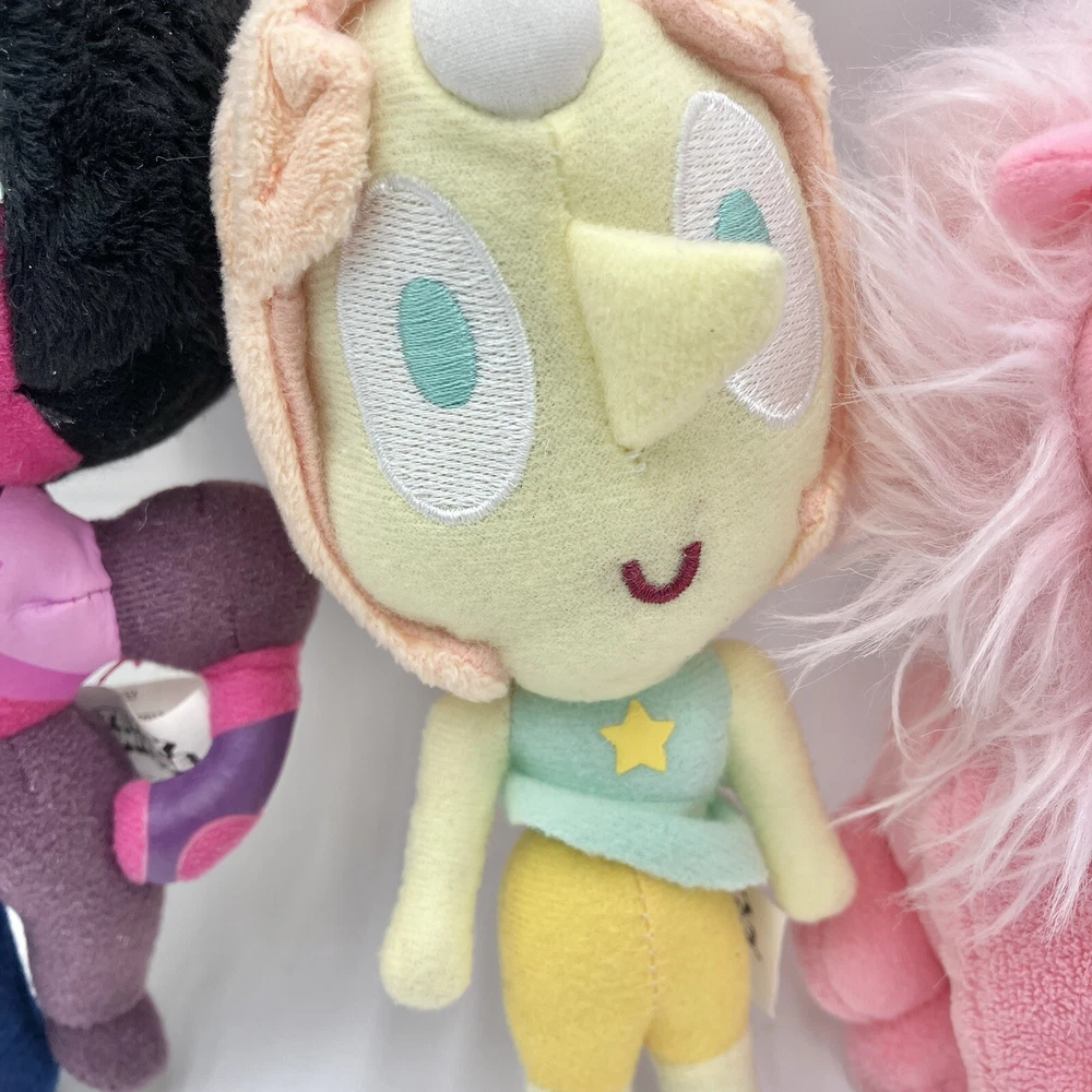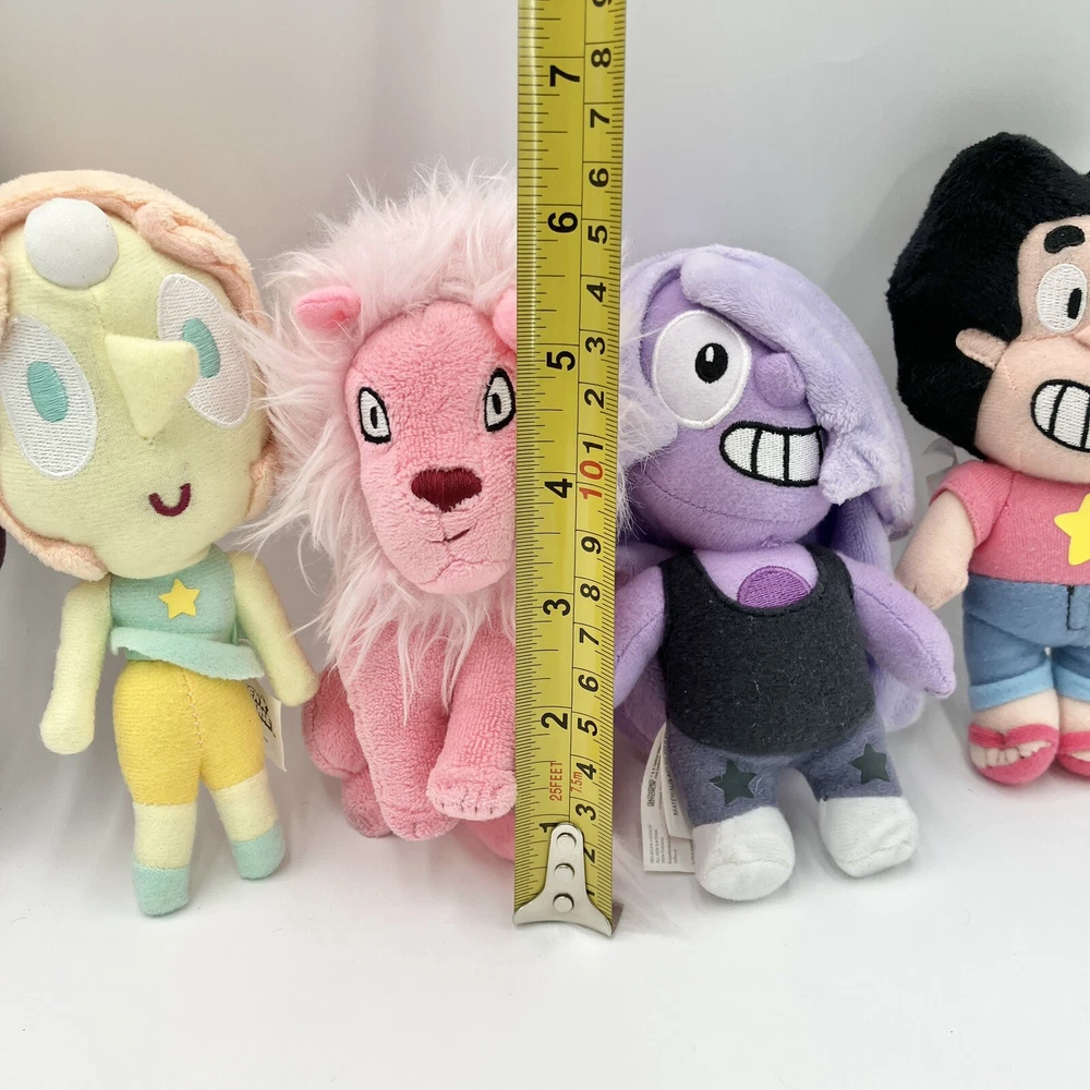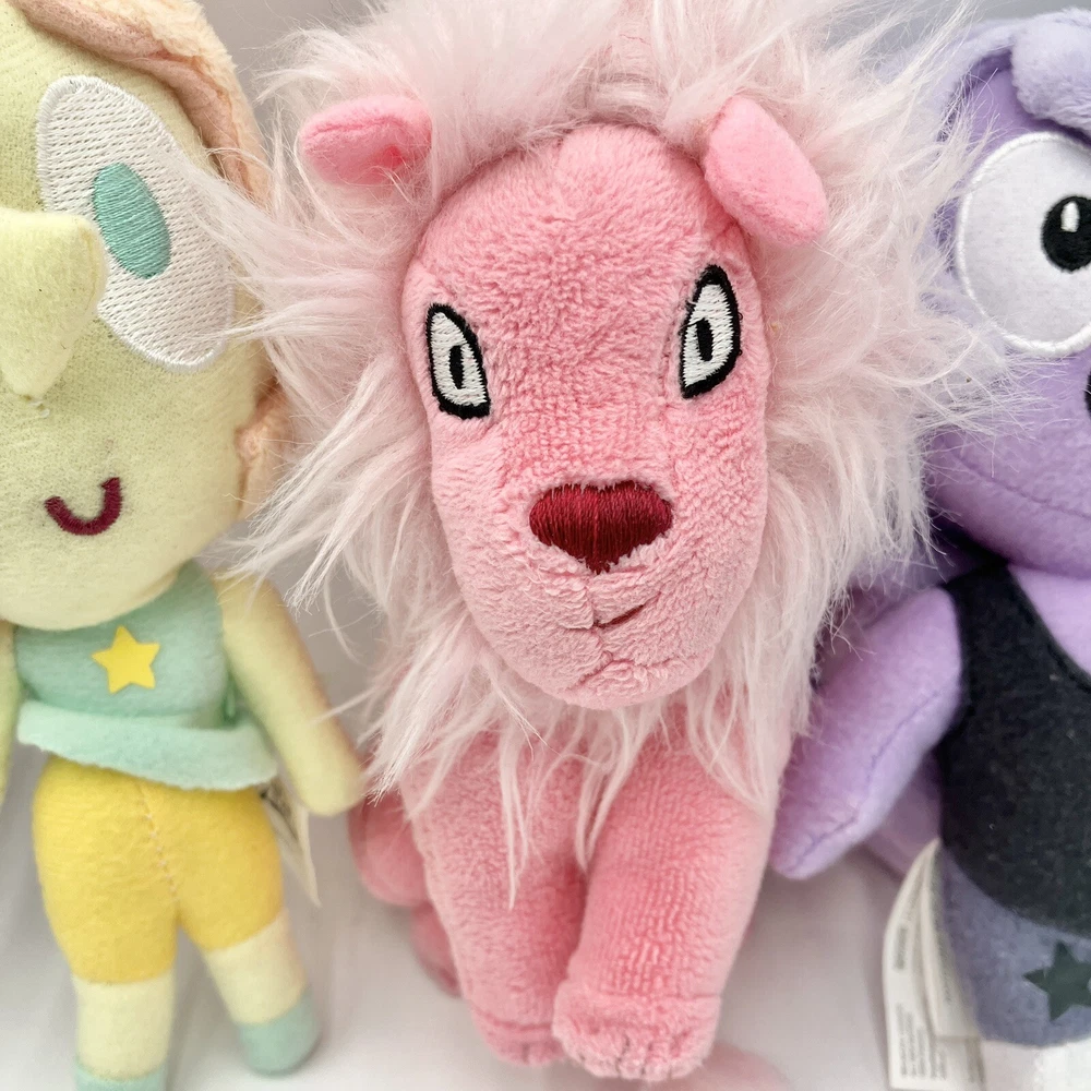This rare Steven Universe plush toy set includes five of your favorite cartoon characters: Pearl, Garnet, Amethyst, Pink Lion, and Steven. Each plush doll measures 6 inches in height and is made of high-quality materials for durability and cuddling. The colorful design and attention to detail make these plush toys perfect for any Steven Universe fan. The set is made by PhatMojo and is an officially licensed product by Cartoon Network. These plush toys are perfect for collectors or for children to play with. Bring a piece of the Steven Universe franchise into your home with this rare and adorable plush toy set. CONDITION: Pre-owned in good condition. Been lightly played with. No staining, rips, or tears. ****SHIPS NEXT BUSINESS DAY****