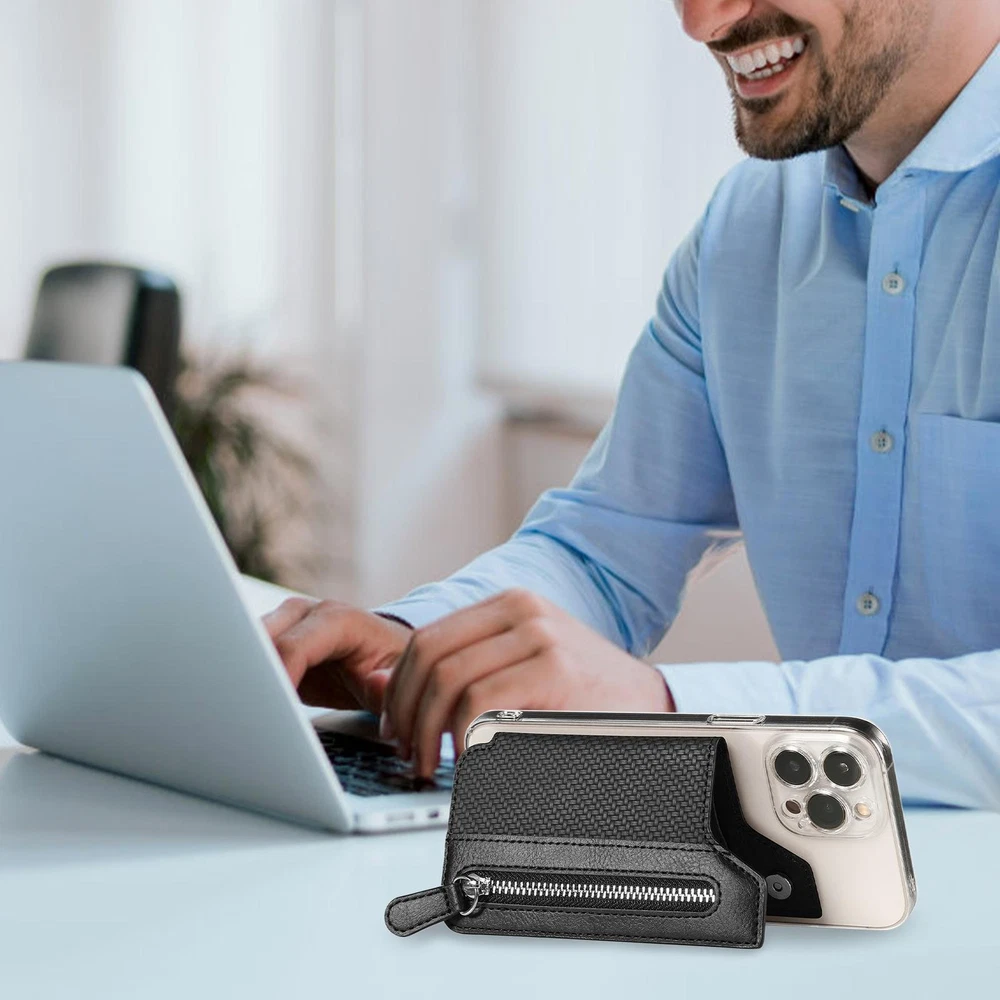 This credit card holder is a game-changer! Sticks securely to my phone, holds up to 6 cards plus cash, and even has a handy coin pocket. The genuine leather feels premium and holds up against daily wear. No more bulky wallets—everything stays organized right on my phone. Perfect for quick errands or nights out when I just want to grab and go. The adhesive stays put but removes cleanly when needed. Super convenient and well-made!