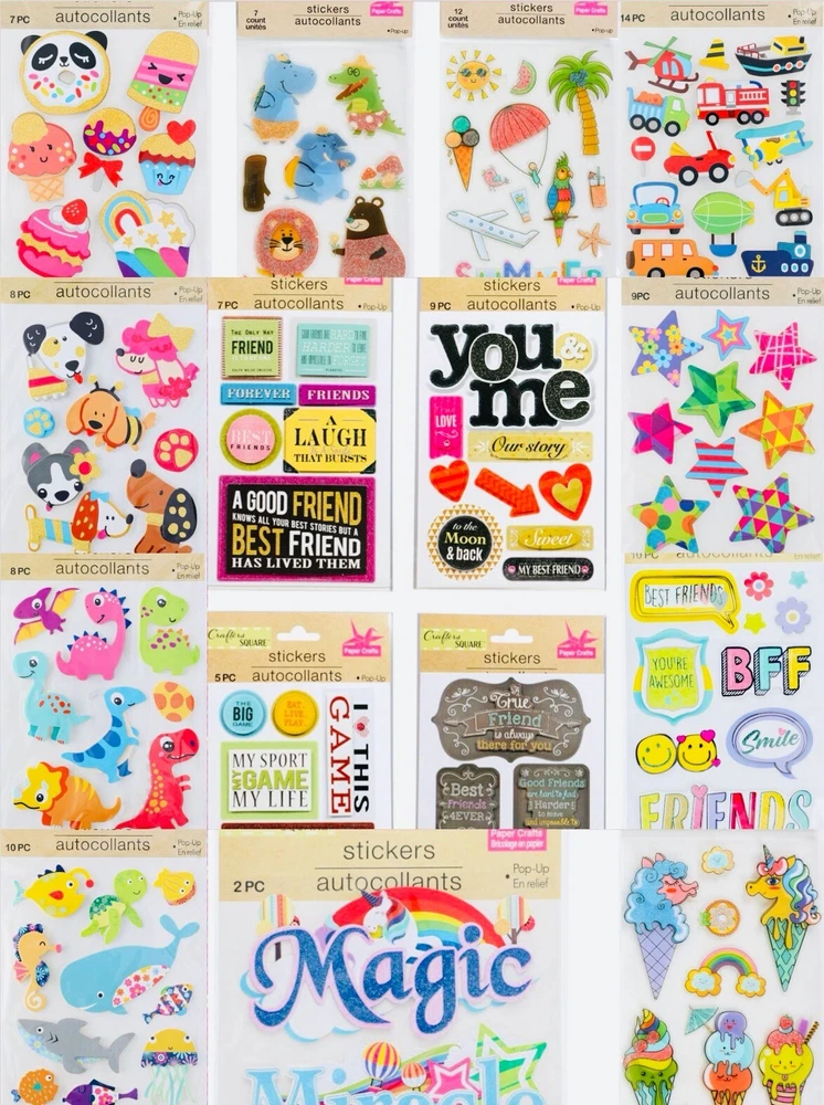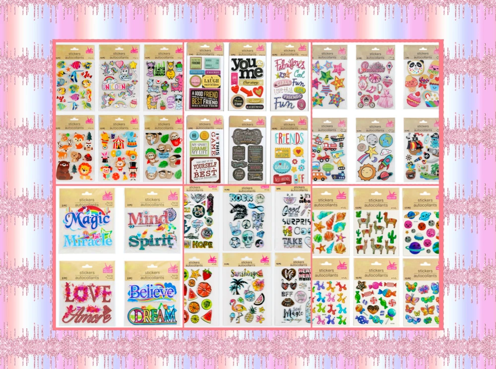 HUGE Mixed Sticker Lot | The Ultimate Kit | Qty. 1499+ Stickers | High Quality Only! Fun Assortment of Puffy, Scrapbook, Cartoons, Bubble, Pop Up Stickers Packs For Everyone! You will receive 47+ Packs of beautiful colorful assortment. The Pack will include 1499+ Stickers overall! I have included a large variety of pictures of the assortment available. The pictures give you an idea of what you will be receiving. Please Note: You will not receive everything pictured. Please contact me with any special requests. This HUGE Variety of fun designs stickers can be used in parties, classroom, school and home, good for reward for students, potty training, adding inside a birthday card, game activities, entertaining toddlers, etc. Perfect Gifts for Kids & all Occasions: Can be given as a gift for kids, girls, boys, toddlers, teens, students, friends, and classmates, they will love it!