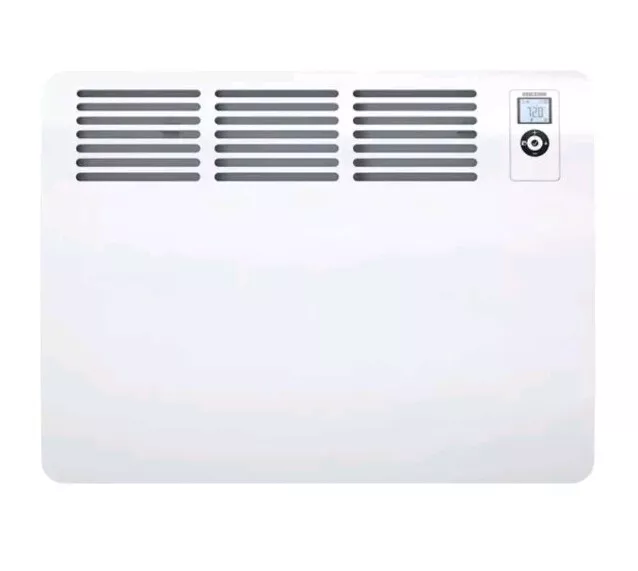 This heater features a space-saving, wall-mounted design that's easy to install. It also features a self-learning program in its timer mode that pre-heats the room, reaching the desired room temperature at the programmed time, not after. With its frost-protection setting, this heater will maintain above-freezing temperatures in a 150 sq. ft. room and has a temperature range between 41 and 86 degrees Fahrenheit. This unit is the perfect addition for retrofit and new construction with its stylish European convection design and its power to heat a space both evenly and silently. It requires a 208/240V electrical connection for operation. Width: 24 5/8" Depth: 4 15/16" Height: 18 1/2" *This product must be hardwired by a professional; it does not plug into a standard wall outlet.*