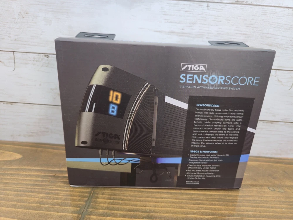 The Stiga Sensorscore Automated Ping Pong Table Tennis Scoring System is a high-tech device designed to keep track of scores during table tennis matches. With its sleek design and advanced sensors, this system provides accurate and efficient scoring for players to easily keep track of their games. The Stiga Sensorscore is the perfect addition to any ping pong enthusiast's collection, ensuring a fair and competitive playing experience.