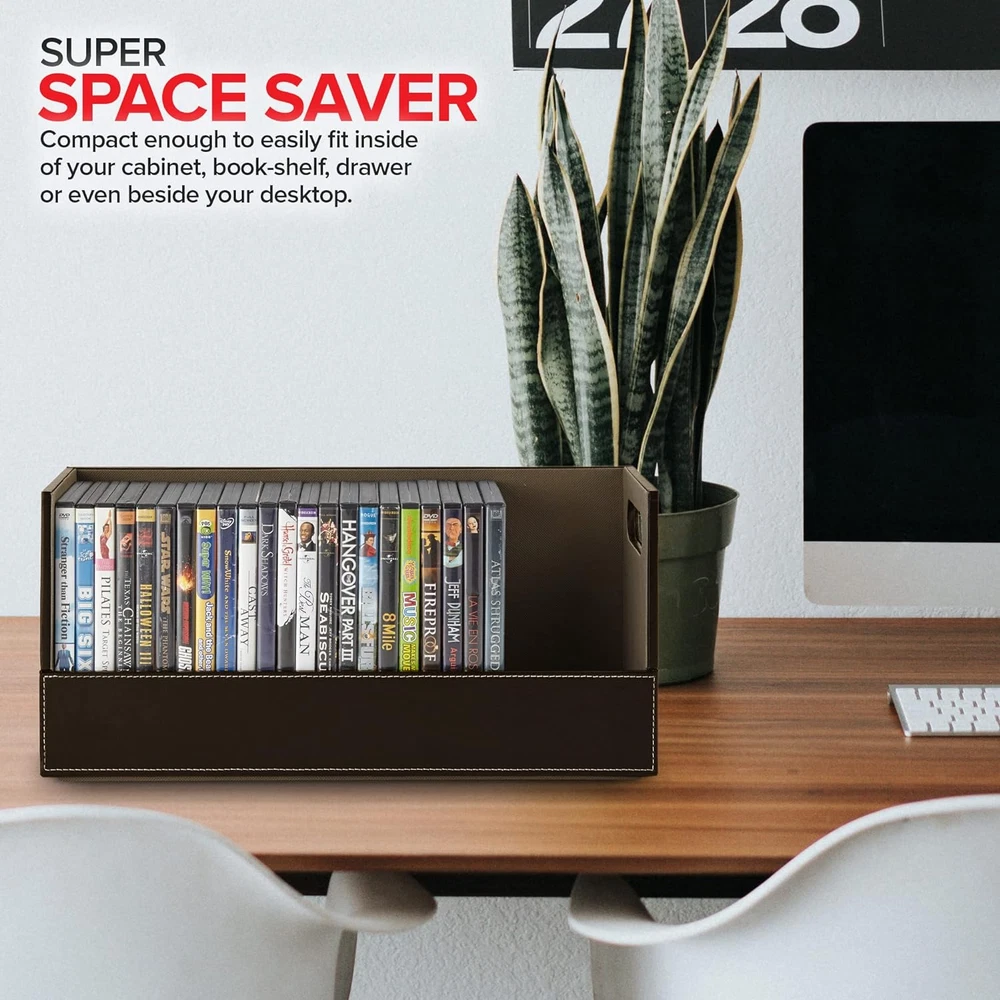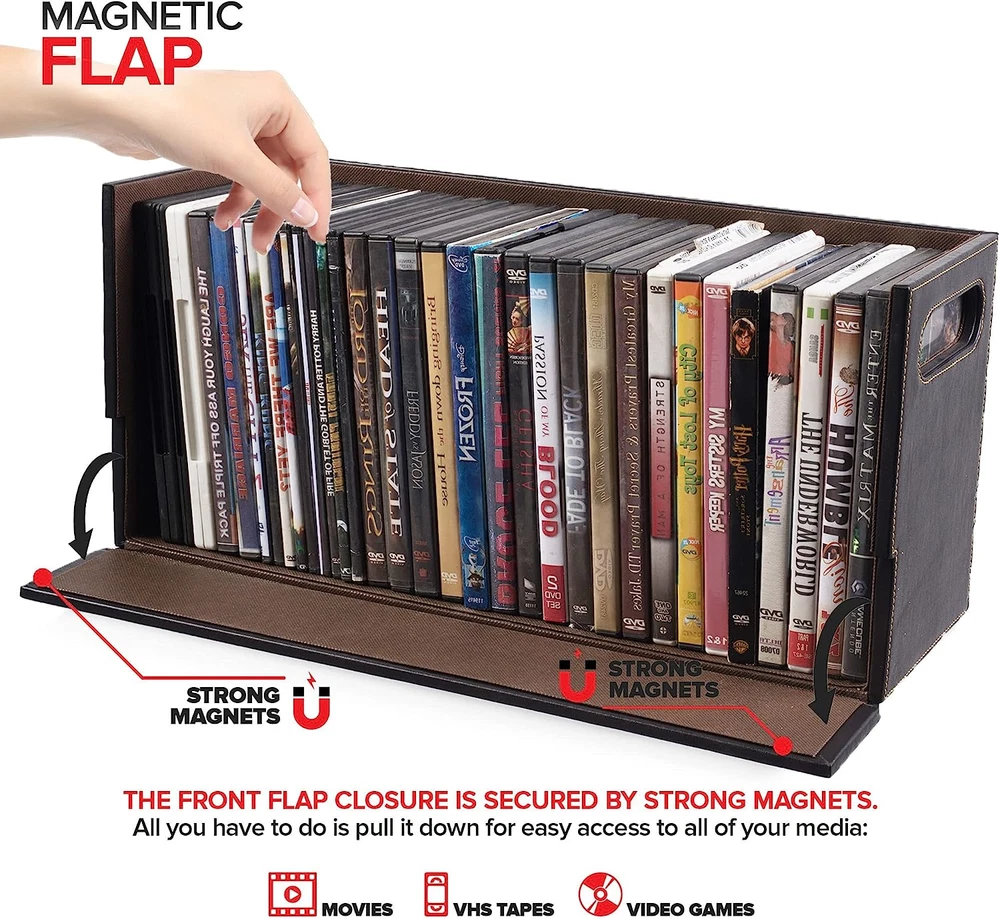 Store New Arrivals Add to Favorite View Feedback Contact Stock Your Home DVD Storage Box, Movie Shelf Organizer for Blu-Ray, Video Game Cases, Cds, VHS Tape Display Stand, Disc Holder Can Store up to 28 Dvds, Faux Leather (Espresso) Description Item model number FBA_991621072 Style Magnetic Batteries Included? No Room Type Living Room Is Customizable No Assembly Required No Product Dimensions 6.2"D x 17.75"W x 8"H Material Faux Leather Is Discontinued By Manufacturer No Manufacturer Stock Your Home Item Package Quantity 1 Batteries Required? No Item Weight 0.01 ounces Finish chocolate Number of Shelves 1 Special Features Storgare box, Holder, Compact Special Feature Storgare box, Holder, Compact Part Number FBA_991621072 Mounting Type Freestanding Color Espresso Finish Type chocolate Global Trade Identification Number 00817496020692 Recommended Uses For Product Media Brand Stock Your Home Size DVD Tray Sophisticated DVD Storage: Our shelves are a chic and stylish way to organize your DVDs. Made with a smooth, faux leather exterior, and a corrugated felt interior, our organizers compliment any home décor. Magnetic Flap: The front flap closure is secured by strong magnets. All you have to do is pull it down for easy access to all of your movie cases, blueray discs, VHS tapes, cassette tapes, and more! Interlocking Design: We've specially designed our containers to interlock with one another, allowing you to stack boxes. You can even mix and match with our CD storage trays to complete your set. Reinforced Handles: Our holders come with sturdy handles so you can easily pick-up, carry, and move your organizers to your desired location. Super Space Saver: Our DVD trays can accommodate up to 28 cases, while still being compact enough to easily fit inside of your cabinet, book-shelf, drawer, or even beside your desktop. Dimensions: 17.75” L x 6.25” W x 8.25” H. Keep all of your media neat and organized with our DVD Storage Box. With a unique interlocking design, you can stack up and build the ultimate DVD tower. The magnetic flap provides optimal visibility and easy access so you can find any album case. The sturdy handles make them easy to move to your ideal location. Our racks can also be used to store books, video games, cassettes, and more. ABOUT US We offer the best prices around on high quality products. Our E-store includes media such as books, movies, music and games while offering electronics, toys, sporting apparel, clothing, tools, general home, garden items and more. SHIPPING We are always working hard to ensure your package arrives as soon as possible. Please understand that some factors like weather, high postal traffic, and the performance of shipping companies are outside of our control. We offer free shipping to the lower 48 states and ship within 2 business days of payment, usually sooner. We do not accept P.O. Boxes. Please provide a physical address. RETURNS We offer a 30-Day Return Policy on items which you are not completely satisfied with. You have the option for a full-refund or an exchange of the item. No returns are available on items shipped outside of the USA. PAYMENT We accept PayPal. CONTACT US This page content is yet to come Please ad us to your favorite seller and visit again later Thank You CUSTOMER SATISFACTION We try our very best to make sure every customer is completely satisfied. If there's a problem, message us! We're happy to help.