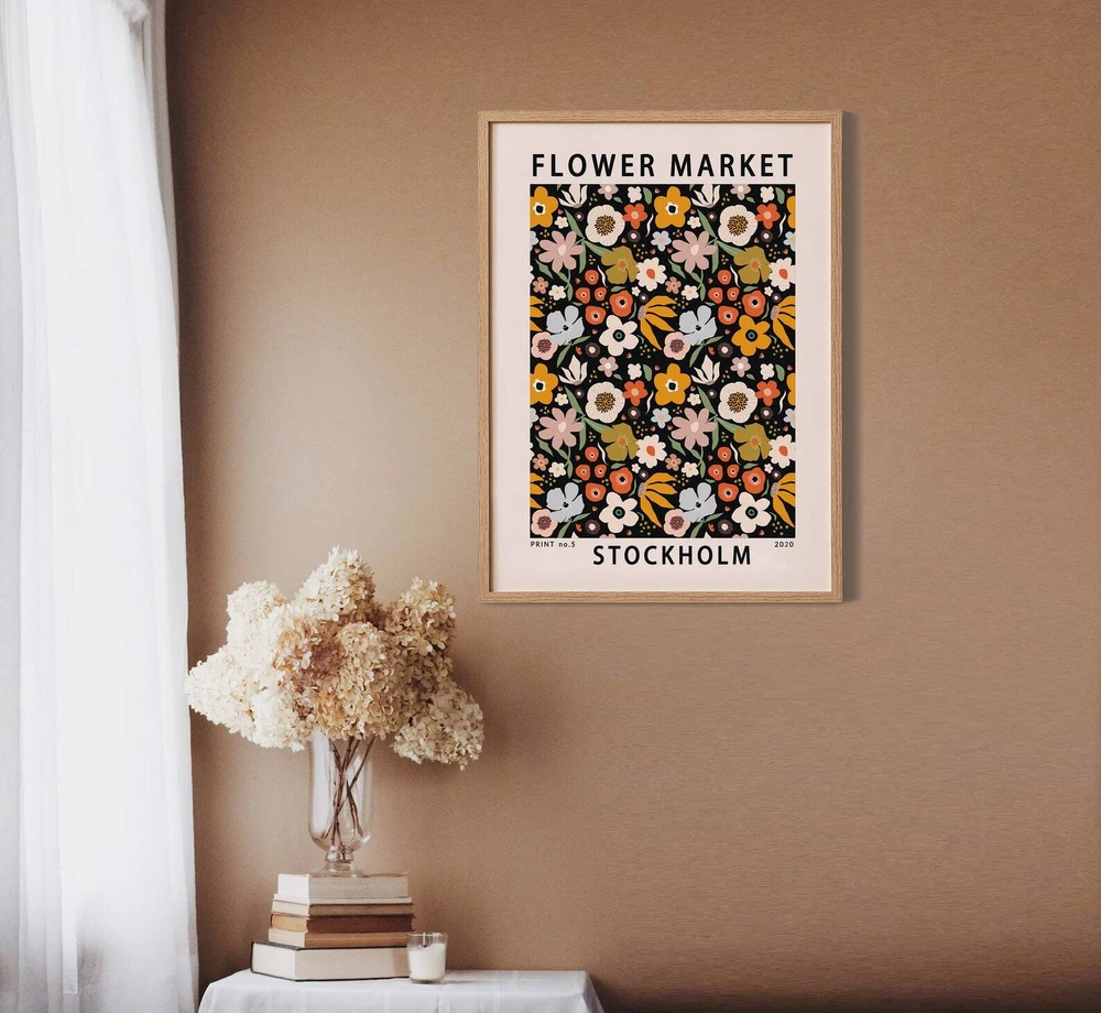 Stockholm Flower Market Poster Stockholm Flower Market Print Stockholm Poster Flower Art Print Wall Art Material: Premium luster photo paper Print type: Inkjet printing One side printed + The finish provides the highest possible resolution and color saturation + Lasts up to 200 years in color and 400 years in black-and-white + Printed on high-quality resin-coated photo base paper medium + Posters can be hung with double-sided tape, tacks, or framed + Hand washing with a gentle cry cloth is recommended for extended durability I will hand select the best choice of paper for your chosen design to ensure top quality results for a beautiful, bright and luxurious print. All prints are sealed in cellophane slips for protection during transportation, and are shipped in a protective cardboard envelope.