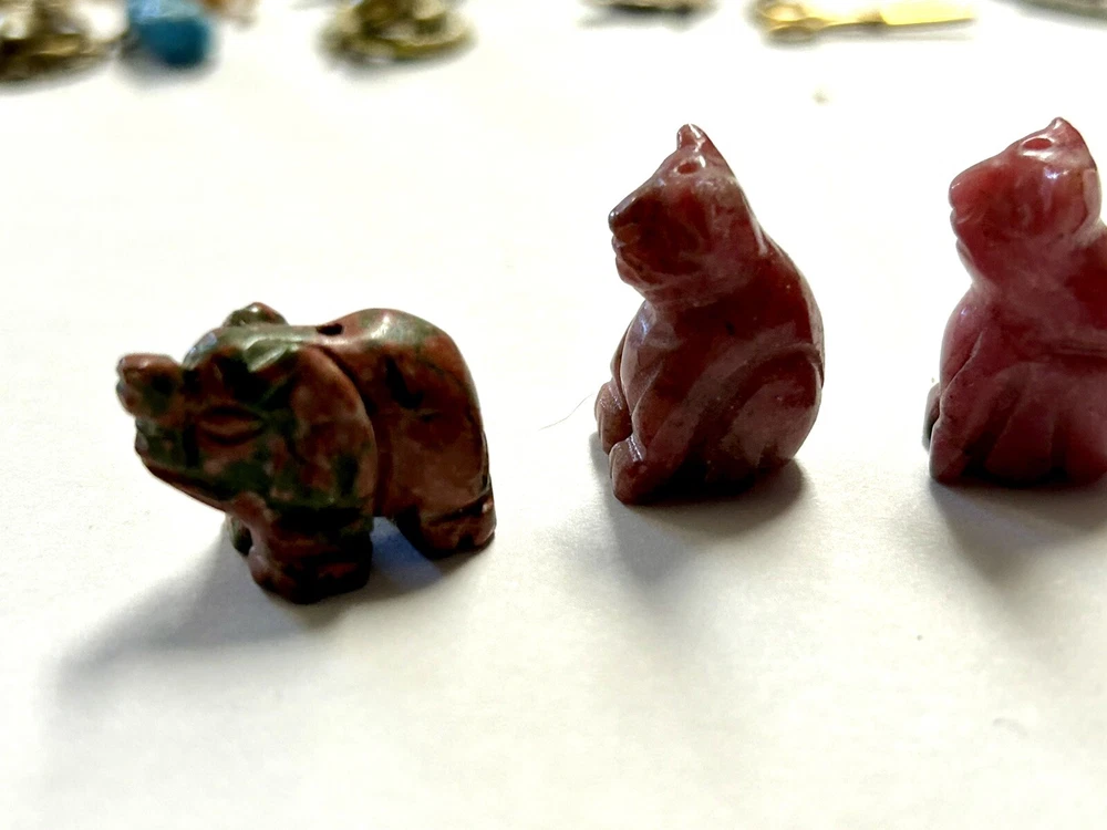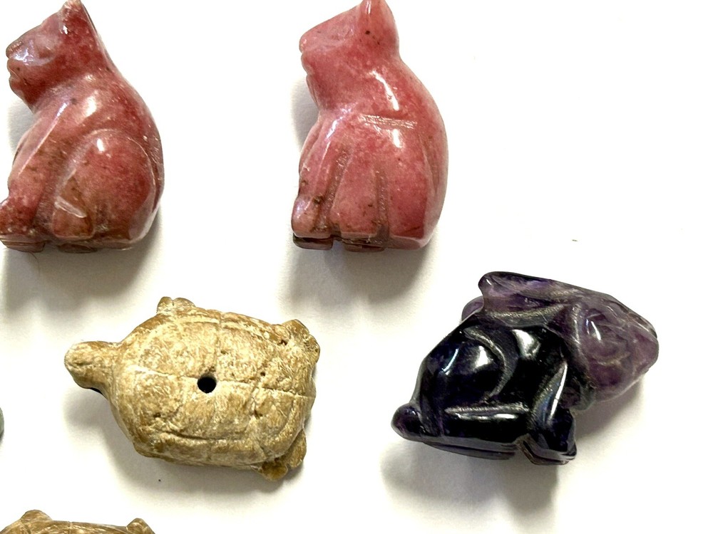 Nice little stone animal bead collection of various stones, bunny is just a bunny, not a bead. Average size is about .75"