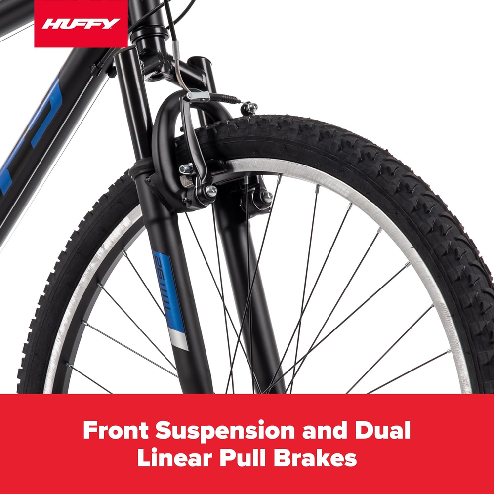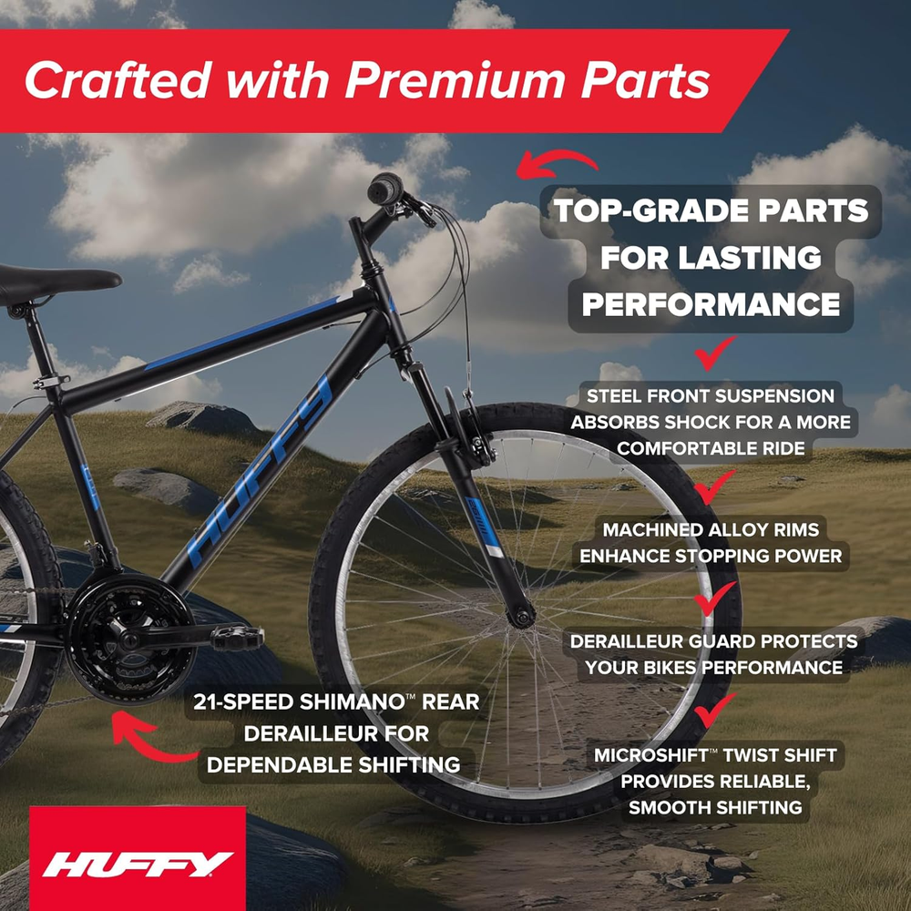 Business is our speciality NEW Stone Mountain Hardtail Mountain Bike for Boys/Girls/Men/Women, 20"/24"/26" Sizes, 6 or 21 Speed Shimano Twist Shifting, Front or Dual Suspension, Comfort Saddle, Sleek Colors FEATURES Sleek Matte Black Frame: Combines rugged durability and a modern matte black design, making it the perfect choice for outdoor adventures and stylish, everyday commutes. 21-Speed Shimano Twist Shifting: Offers smooth and reliable gear transitions, ensuring optimal performance across a variety of terrains, from flat roads to challenging hills and rugged trails. Front Suspension System: Features a front suspension fork that effectively absorbs bumps, shocks, and uneven terrain, delivering a smoother, more comfortable, and controlled riding experience. Comfortable Saddle Design: Equipped with a padded comfort saddle to keep you supported and comfortable, even during long rides or extended cycling sessions on rough paths. Built for Adventure: With its 26-inch wheels and robust construction, this mountain bike is designed to handle rough trails, uphill climbs, and daily excursions, making it versatile and adventure-ready. From backyard paths to off-road trails, the Huffy Stone Mountain is built for riders who are ready to take on adventure. Available in 20", 24", and 26" sizes, this rugged mountain bike lineup fits a wide range of riders—ideal for kids, tweens, teens, and adults, depending on the size. The 20" Stone Mountain features 6 speeds, offering young riders a great introduction to multi-speed control. For more experienced cyclists, the 24" and 26" sizes step it up with 21-speed Shimano twist shifting—perfect for navigating hills, dirt paths, or longer rides with ease. Every model includes a front suspension fork to smooth out bumps, along with sturdy knobby tires for added grip on uneven ground. Designed for durability and comfort, each Stone Mountain is equipped with a padded seat, steel frame, and reliable braking system to keep rides controlled and comfortable. With a range of colors and sizes, there's a Stone Mountain bike built for every kind of trailblazer. Backed by Huffy’s 130+ year legacy of quality, every Stone Mountain bike includes a limited lifetime frame warranty for peace of mind. Some assembly required. Style 26" Matte Black Number of Items 1 Power Source Pedal power Warranty Type Limited lifetime Package Weight 19.48 Kilograms Theme Sport, Outdoors Bike Type Mountain Bike Wheel Width 1.95 Inches Seat Material Type Faux Leather Brake Style Dual linear pull Is Autographed No Assembly Required Yes Material Steel Maximum Weight Recommendation 750 Pounds Wheel Size 26 Inches Suggested Users mens Frame Material Alloy Steel Age Range (Description) Adult Specific Uses For Product Trail, Gravel Item Package Dimensions L x W x H 55.13 x 27.5 x 8.38 inches Included Components Kickstand, Manual, Bike, Assembly tools Wheel Material Alloy Number of Speeds 21 Number of Handles 2 Item Weight 37.04 Pounds Minimum User Height 58 Inches Special Feature Kickstand, 21 Speed Twist Shifting, Front Suspension, Easy Assembly, Adjustable Seat Item Dimensions LxWxH 67.72 x 23.82 x 40.16 inches Part Number 76803 Bicycle Gear Shifter Type Twist Grip Color Matte Black Skill Level Beginner Year 2023 Warranty Description Limited lifetime Model Name Stone Mountain Suspension Type Front Size 26 Inch 27.5 inches x 55.13 inches x 8.38 inches. Weight: 37.04 lb Ask us anyhting Free shipping PAYMENT We accept all payments via Ebay using Credit Cards , PAYPAL , Apple Pay and many others SHIPPING We are always working hard to ensure your package arrives as soon as possible. Please understand that some factors like weather, high postal traffic, and the performance of shipping companies are outside of our control. DELIVERY & RETURN POLICY We offer a 30-Day Return Policy on items in which you are not completely satisfied with. You have the option of a full-refund or an exchange of the item. No returns are available on items shipped outside of the USA.