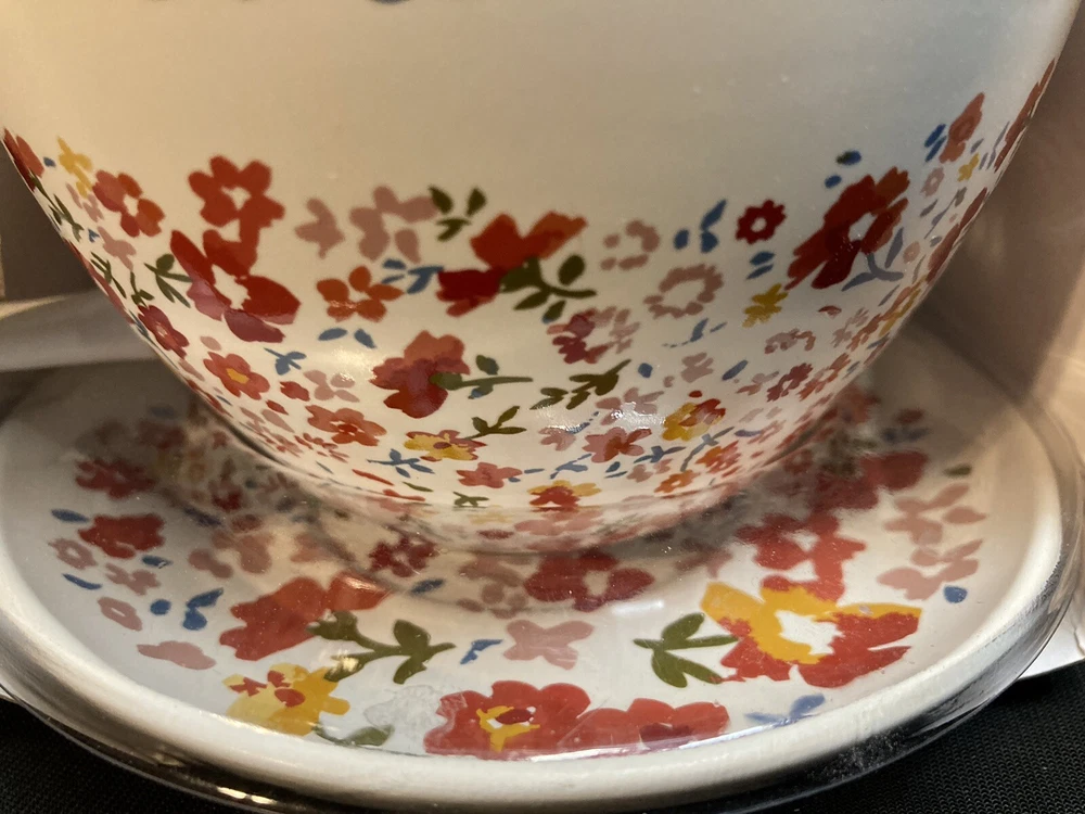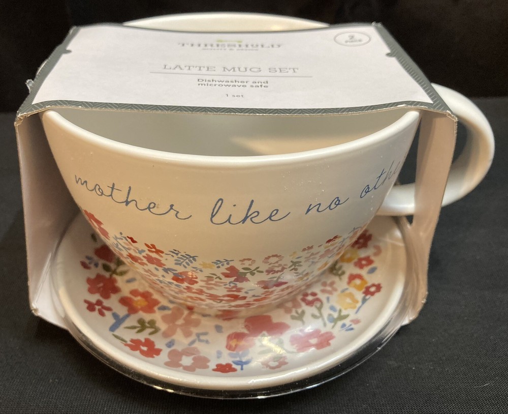 This two-piece floral coffee mug set by Threshold measures 3.5 inches tall by 6 inches wide. The cup holds 15 ounces and has a diameter of 4.5 inches. The set is brand new with no chips, cracks, or breaks. Please see pictures for complete details. If you have any questions or concerns, please do not hesitate to contact us. Check out our other items and message us if interested in more than one listing as combining items could save you money on shipping. RETURNS & REFUNDS Please inspect your item as soon as it arrives. We stand by the quality of the items we sell and will issue a full refund, including shipping charges, on any defective item that is returned. Please note: photos of the item, packaging, serial numbers and/or product identifiers may be required in order to guarantee a full refund. Returns are accepted on non-defective items; however, shipping charges will be withheld from your refund.