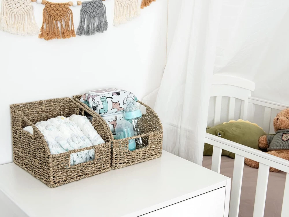 Product Description Storage Baskets for Organizing, Wicker Baskets with Built-in Handles, Handwoven Wicker Storage Baskets, Seagrass Wicker Baskets for Shelves Storage, 2 Pack 100% Natural Seagrass Versatile pantry baskets for spices, canned foods, pet food in kitchen, or magazines, iPad, kindle, games, and media. Made from 100% natural, earth-friendly, renewable seagrass, the kitchen storage baskets for pantry help reduce our impact on the environment. Simple open shapes keep contents neatly stored yet accessible. Handwoven kitchen baskets for storage feature 2 wooden handles for secure and easy carry. About Us We are a reputable seller with many years of experience selling on eBay. Our goal is to provide high-quality products and excellent customer service. Shipping Items will be shipped within 1-3 business days when we received payment. (Orders are not processed on weekends & holidays) Tracking information will be sent once item is shipped. Delivery time depends on destination and other factors Item is shipped to ebay address. Leaving correct address can minimize delay. For international shipping and shipping to Guam, Hawaii and Alaska, Please contact us before placing the order. International buyers please note: Import duties, taxes and charges are not included in the item price or shipping charges. These charges are buyer’s responsibility. We will try our best to reduce the risk of the custom duties. Local pick-up is unavailable at the moment. Contact Us We reply any email messages within 1 business / working days(off-duty at weekend). If you do not get a response from us, then please check your junk or spam mailbox. Our Business hours: Mon-Fri 9:00-18:00, UTC/GMT +8 hours. Please contact us either by clicking "contact seller" in the "purchase history" section or simply click "ask a question" at the bottom of this page. If you are unsatisfied with our item or service, please contact us before leaving any feedback. We are committed to resolve all issues in a friendly and satisfactory manner.