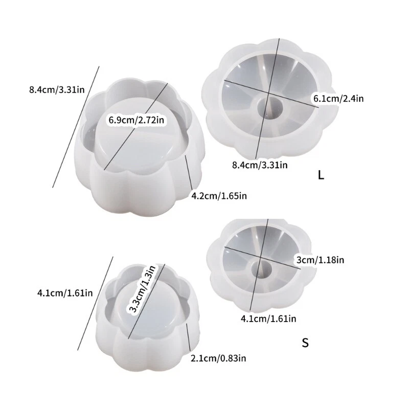 Features: Create flower patterns effortlessly with this versatile silicone mold set. Crafted from quality silicone, these molds are heat resistant, flexible, and easy to release your creations. Suitable for art enthusiasts, DIY enthusiasts, and owners of handmade gift shops. Use these molds to make crystal droplet lace, storage jars, DIY cement or holders, and decorative displays. Perfect for enhancing your home decor, craft classes, wedding decorations, and holiday gift making. Specifications: Material: Silicone S Size: Approx. 1.61x0.83inch(4.1x2.1cm) L Size: Approx. 3.31x1.65inch(8.4x4.2cm) Package Includes: 1 Set Silicone Storage Box Molds note: Please allow 1-2cm errors due to manual measurement. Due to the difference between different monitors, the picture may not reflect the actual color of the item.