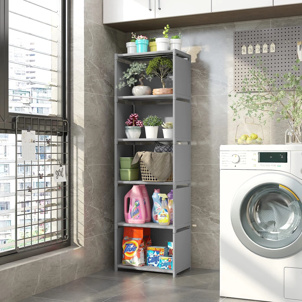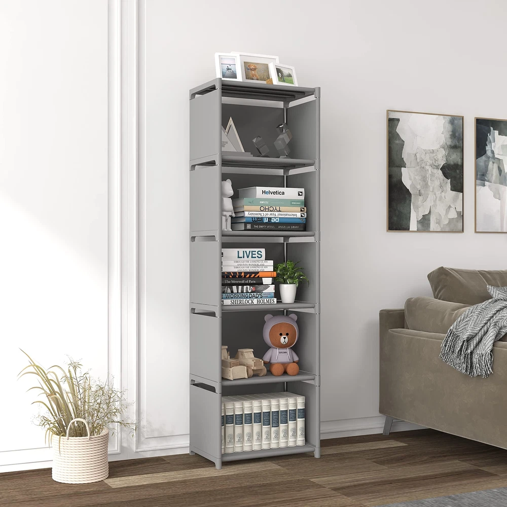 This storage cube shelf is constructed of steel frame and waterproof non-woven fabric, durable and practical, which can last for a long time; Such a storage shelving unit can effectively organize and decorate your rooms The storage organizer shelf with 5-cube can provide large storage capacity and various sorting compartments, for organizing books, magazines, toys, towels, clothes, underwear, socks and other sundries, perfect for small spaces Such a small storage shelf with simple structure, easy to set up once getting the hang of it; parts are easy to classify, no hand tools are required and 10-15 minutes for assembly, then a decent and sturdy shelving unit will appear This versatile cube organizer shelf applies for rooms from living areas, kids rooms, bedroom, closet or entryway; it creates storage and display space for any area in the home; Placement flexibility as vertical or horizontal Due to lighting effect, monitors brightness, manual measurement, etc., please note this cube storage shelf could be some slight differences in the color and size between the photo and the actual item; Additionally, please write to us in time if there is any missing parts