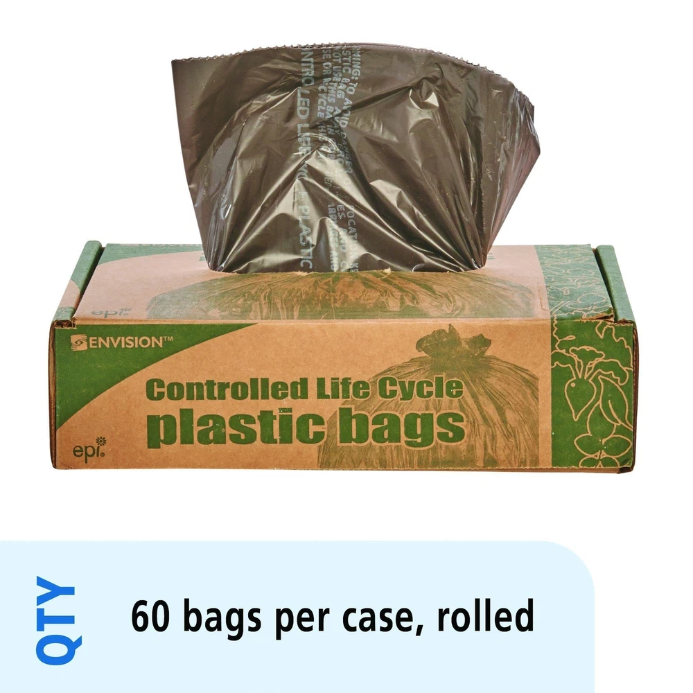 Fully degrades in commercial landfills in 18- 24 months, leaving no harmful residues. Bags biodegrade in approximately 36 months depending on the available oxygen and microbial activity present.Includes 60 can liners. Designed for waste destined for the landfill Leave no harmful residues Eco-friendly Size: 30"W x 36"H