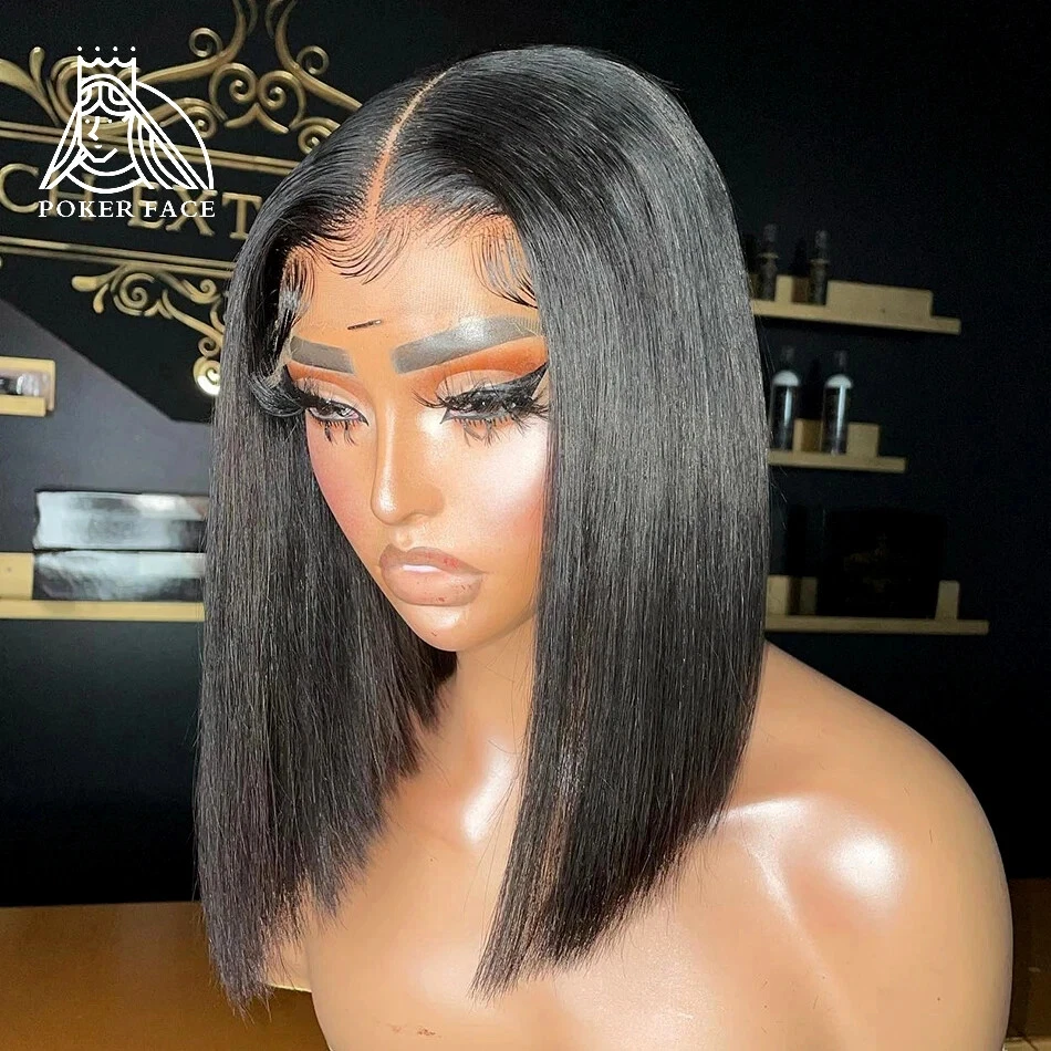 $ 129.275x5 Glueless Lace Front Bob Wig Preplucked Human Hair Short Straight