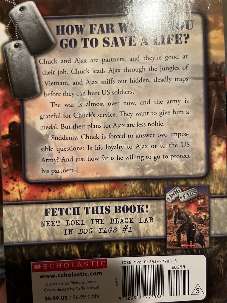 LCCN:2012-031131Item Weight:5.5 OzIntended Audience:Juvenile AudiencePublication Year:2013Book Series:Dog Tags Ser.LC Classification Number:PZ7.L8419St 2012Synopsis:Man's best friend goes to war. Chuck and Ajax are partners, and they're good at their job. Chuck leads Ajax through the jungles of Vietnam, and Ajax sniffs out hidden, deadly traps before they can hurt US soldiers. The war is almost over now, and the Army is grateful for Chuck's service. They want to give him a medal. But their plans for Ajax are less noble. Suddenly, Chuck is forced to answer two impossible questions: Is his loyalty to Ajax or to the US Army? And just how far is he willing to go to protect his partner? Dog Tags is a series of stand-alone books, each exploring the bond between soldier and dog in times of war.Grade To:Ninth GradeTopic:Animals / Dogs, Action & Adventure / General, General, Historical / Military & WarsGenre:Juvenile Fictionbrand:Scholastic, IncorporatedItem Height:0.6 inDewey Edition:23Publisher:Scholastic, IncorporatedNumber of Pages:224 PagesAuthor:C. Alexander LondonGrade From:Fifth GradeItem Width:5.3 inDewey Decimal:[Fic]Format:Trade PaperbackItem Length:7.6 inBook Title:Straysgtin13:9780545477055ISBN-13:9780545477055ISBN-10:0545477050Language:EnglishSeries Volume Number:2
