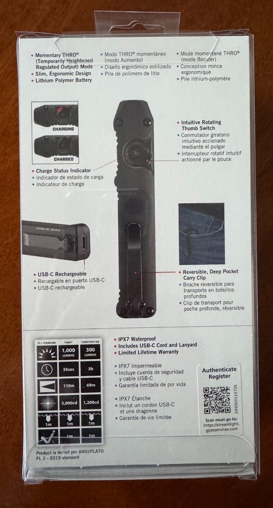 Authentic Streamlight 88811 Wedge, rechargeable everyday carry light, 1,000 Lumens, color: coyote, limited lifetime warranty, intuitive rotating thumb switch, reversible deep pocket carry clip, IPX7 waterproof and includes USB-C cord and lanyard. Brand new.
