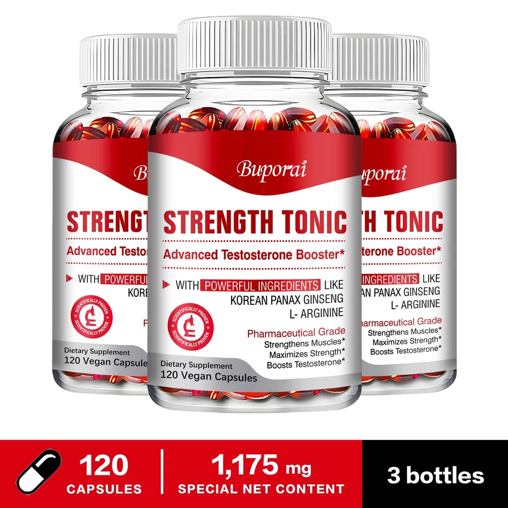 Effects: Energy & Endurance, Men's Health, Testosterone Booster Ingredients: Korean Ginseng,Ginkgo biloba Powder,Horny Goat Weed,Tribulus terrestris Directions: Take 2 capsules once daily after a meal. Shipping: Ships within 48 hours on working days. Shelf life: 2 years Description: MAXIMIZE PERFORMANCE: Our testosterone supplement for men is designed to give you an unparalleled performance boost, helping to elevate your game in and out of the gym. NATURAL HORMONE BOOSTER: Our testosterone booster supplement works with your body to boost testosterone and growth hormone levels while blocking estrogen, increasing muscle mass, energy, strength, and vitality. Document