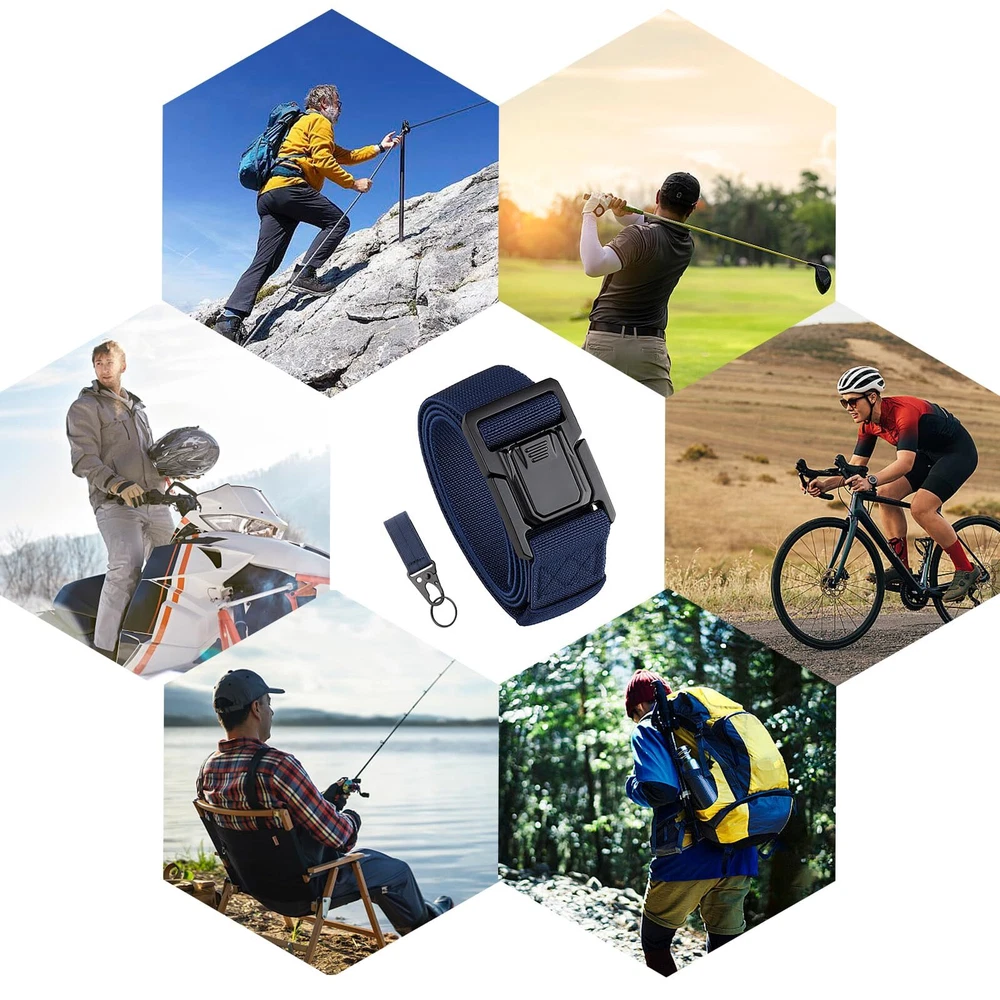 ⭐️[ Heavy Duty Upgrade Buckle ]: The tactical belt buckle is made from premium quality aluminium alloy, whose merits are lightweight, anti-corrosion and weatherability. And the buckle features heavy-duty, quick release and easy to use. ⭐️[ Comfortable Elastic Strap ] : Our stretch tactical belt is designed with no holes for a perfect fit that guarantees maximum comfort and convenience adjustability for all men, making it perfect for daily, work, outdoor activities such as hiking, fishing and mountain climbing. ⭐️[ A Great Combination ] : Combine the sturdy alloy buckle with the wrinkle-free strap is for durable and stretchy to withstand wear and tear from rugged outdoor adventures or everyday use. Making it ideal for men in the military, SWAT, rigger, security staff and other outdoor enthusiasts. ⭐️[ Packed in Gift Box ]: Our elastic tactical belt comes in a gift box with three sizes to choose from, making it the perfect gift idea for that special man in your life who loves outdoor activities or simply needs a strong, durable work belt that won't let them down. ⭐️[ Satisfying Service ] : 30-Day Money-Back Guarantee. All tactical belts will be reviewed carefully before delivery to hope you will enjoy the shopping. Please kindly contact us if you get any question about the belt and we will reply within 24 hours.