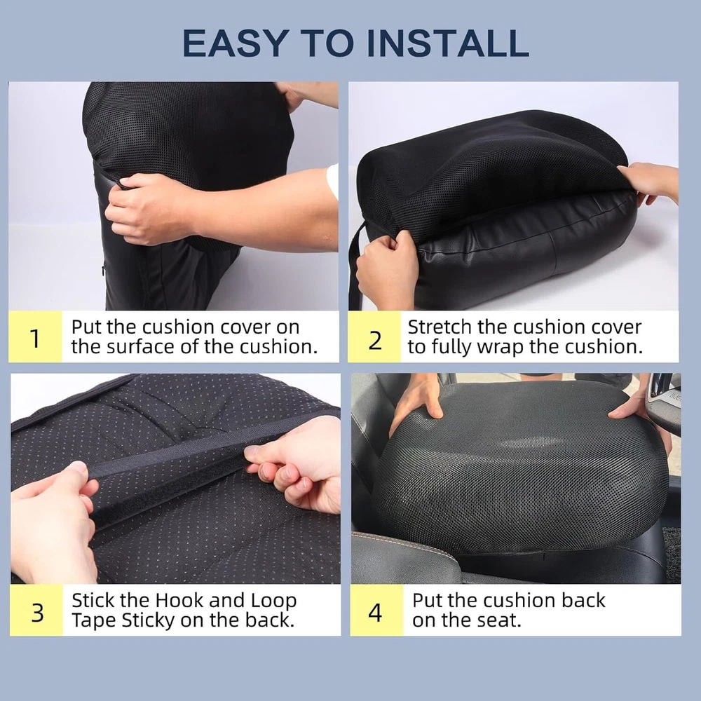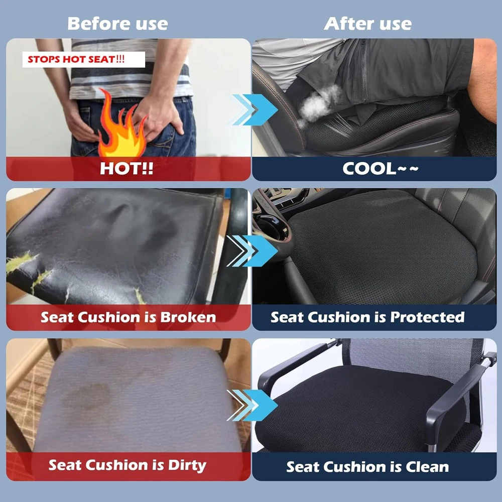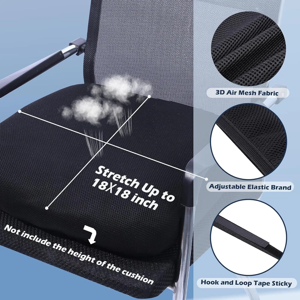 • Universal Fit: This product is an easily stretchy fabric that fits most car, office and wheelchair seat cushions. It adapts easily to different shapes, providing a snug fit and eliminating compatibility concerns. (PS: This cushion cover is suitable for separate cushions but not applicable for installation on original car seats or household chairs.) • Breathable Material: The soft 3D spacer air mesh fabric ensures constant airflow. It keeps you cool in summer and warm in winter, enhancing your seating comfort and well-being. • Protective Cover: The included cover protects the cushion from dirt and sweat, maintaining its cleanliness and extending its lifespan. It also slows down seat cushion’s aging. • Easy Installation: Installation is very simple. The elastic fabric stretches and attaches easily to cushions up to 18 x 18 x 4.7 inches without tools or complex steps. • Cleaning and maintenance: It is machine washable, making cleaning easy and maintaining hygiene. You can also fold it for storage when not in use. On Sep 19, 2024 at 19:39:42 PDT, seller added the following information: Track Page Views With Auctiva's Counter