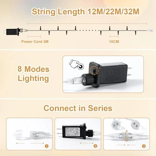 Return Policy Fast Delivery Trusted seller String Fairy Lights Plug in, 72FT 220LED Indoor String Lights Twinkle Fairy Lights, Outdoor Christmas Lights 8 Modes IP44 Connectable for Bedroom, Patio, Classroom Product Description Various Lengths – fairy lights available in lengths of 12M/22M/32M, with connectable function to suit your decorating needs. Easily create a inviting atmosp in any space. 8 Lighting Modes – Featuring 8 different lighting modes, including steady on, twinkling, slow fade, and more. You can easily switch between modes with a button on the transformer. IP44 Waterproof – Enjoy year-round use both indoors and outdoors with the IP44 waterproof rating. string fairy lights ensure reliable performance in various weather conditions. Safe to Use – Operate at low voltage and maintain a low temperature, ensuring these string lights are safe to use without the risk of overheating or injury. Use them with peace of mind. Wide Applications – Perfect for festive holiday decor and everyday home use. Adorn your Christmas tree, patio, garden, bedroom, or any space needing a touch of sparkle and elegance. Shipping Returns Payment Shipping Shipping is FREE to all addresses other than APO/PO boxes in the lower 48 states. All our stock ships from US-based warehouses. Shipped via USPS or UPS (depending on location and package weight) Unless stated otherwise, all orders will ship within 24-72 hours of your payment being processed. Check our feedback to see the great reviews of FAST shipping we offer. Returns Seller does not accept returns Payment We currently accept payment via eBay managed payments only. Once payment is cleared, we will dispatch your shipment within 1-3 business days. Please refer to the "Shipping" tab for more information regarding shipping speed to your destination.