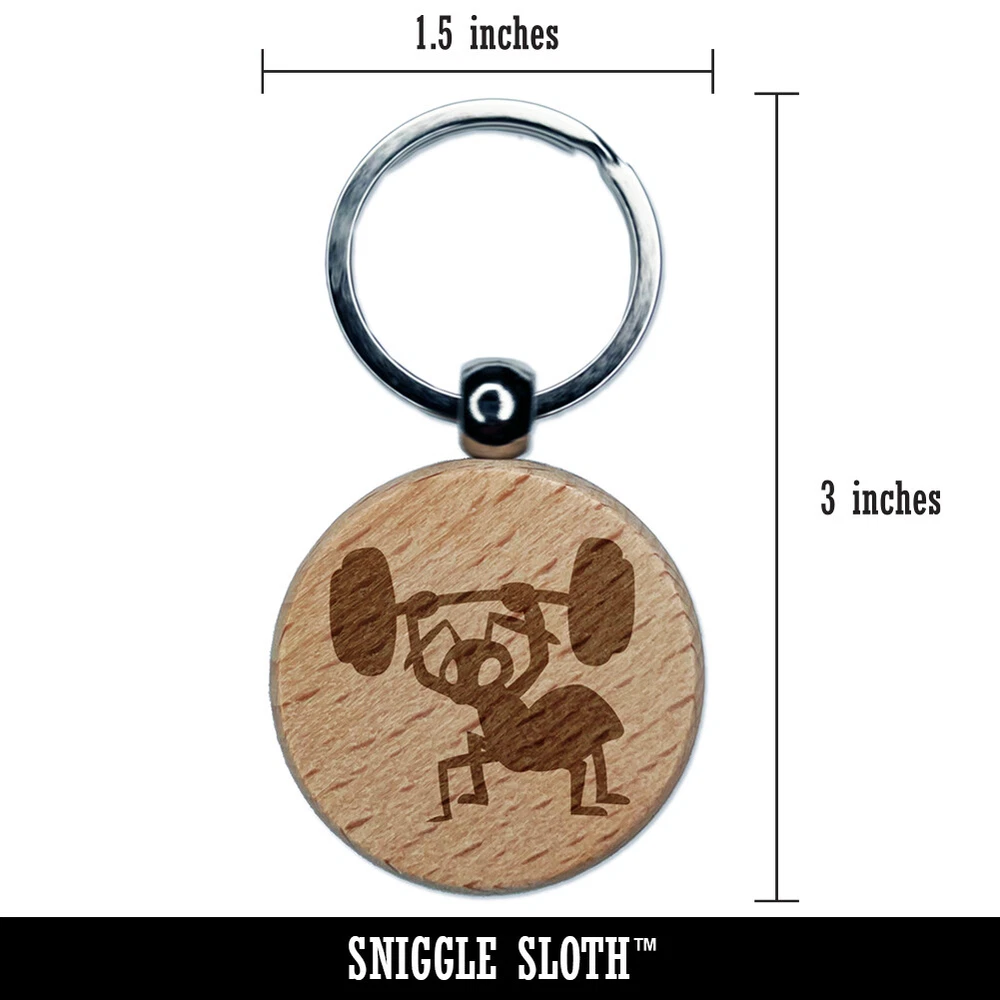 Strong Ant Lifting Barbell Engraved Wood Round Keychain Tag Charm