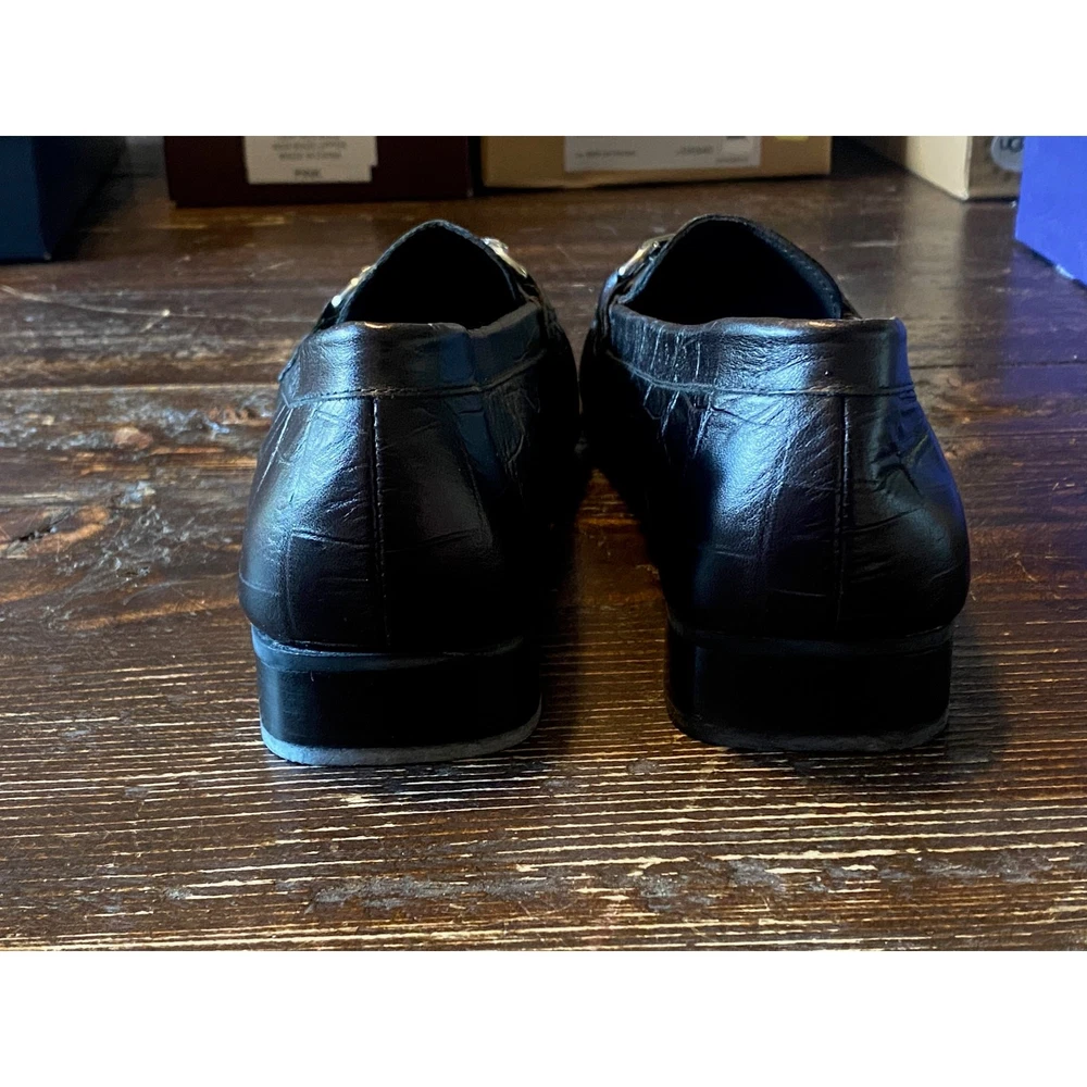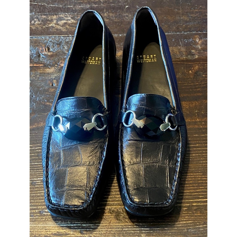 Stuart Weitzman HARDROCK Black Giant Croco Loafer Decorative Gemstone Vamp Size 9 New in Box Made in Spain Length dimensions are in the photos Heel 1"