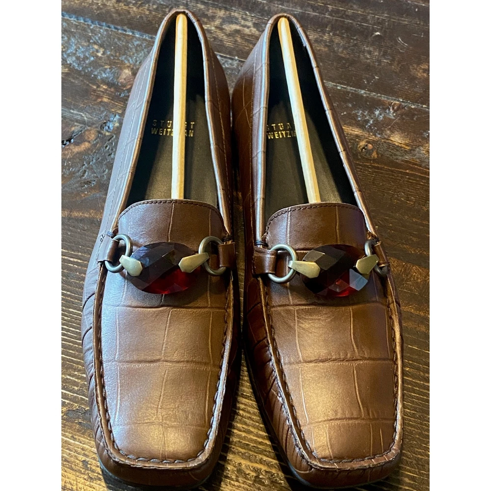 Stuart Weitzman HARDROCK Brown Giant Croco Loafer Decorative Gemstone Vamp Size 9 New in Box Made in Spain Length dimensions are in the photos Heel 1"