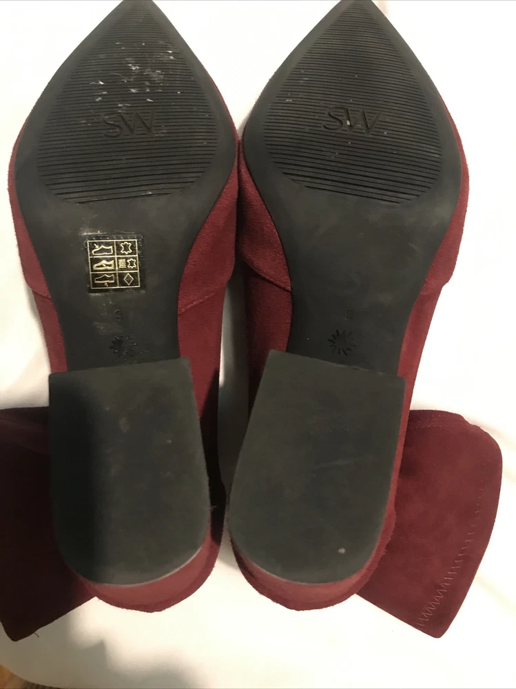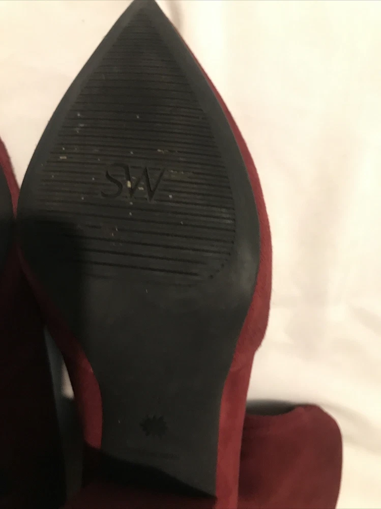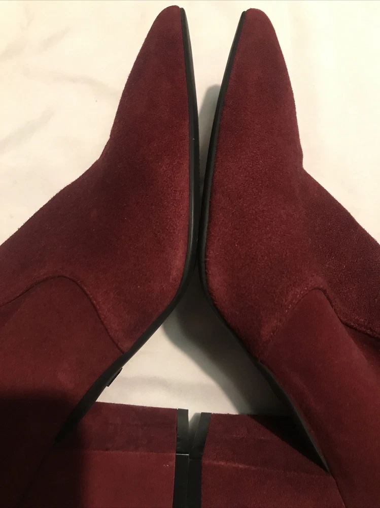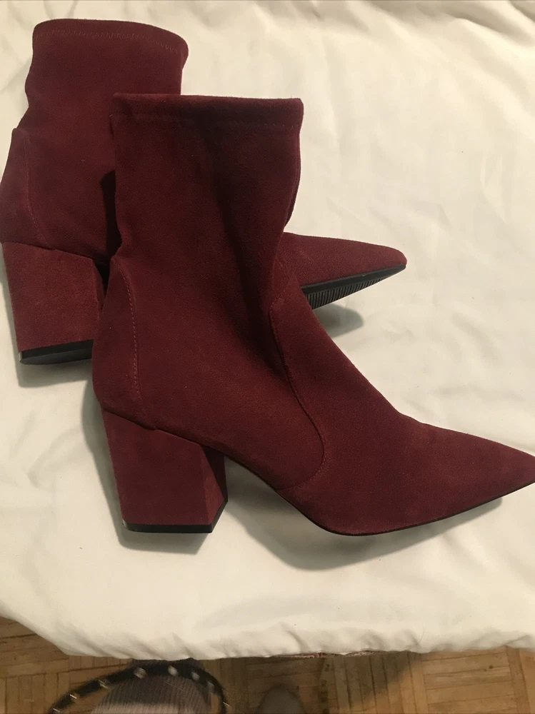 Elevate your shoe game with these stylish Stuart Weitzman Suede Ankle Sock Boots in a beautiful burgundy color. These boots feature a pointed toe and pull-on closure, making them perfect for any occasion from casual to formal. The high block heel adds a touch of sophistication, while the velvet suede upper material and leather lining provide comfort and stretch. These boots are perfect for any season, whether it's winter, summer, fall, or spring. They come in women's size 8 and have a regular calf width. These boots have a versatile style and can be worn for various themes such as festivals, weddings, and even preppy or punk rock. Get your hands on these stunning boots from Spain today! Measure: Shaft 3,5 in Circumference 4,5” Heel 3 in It comes from a smoke free home in very good condition.