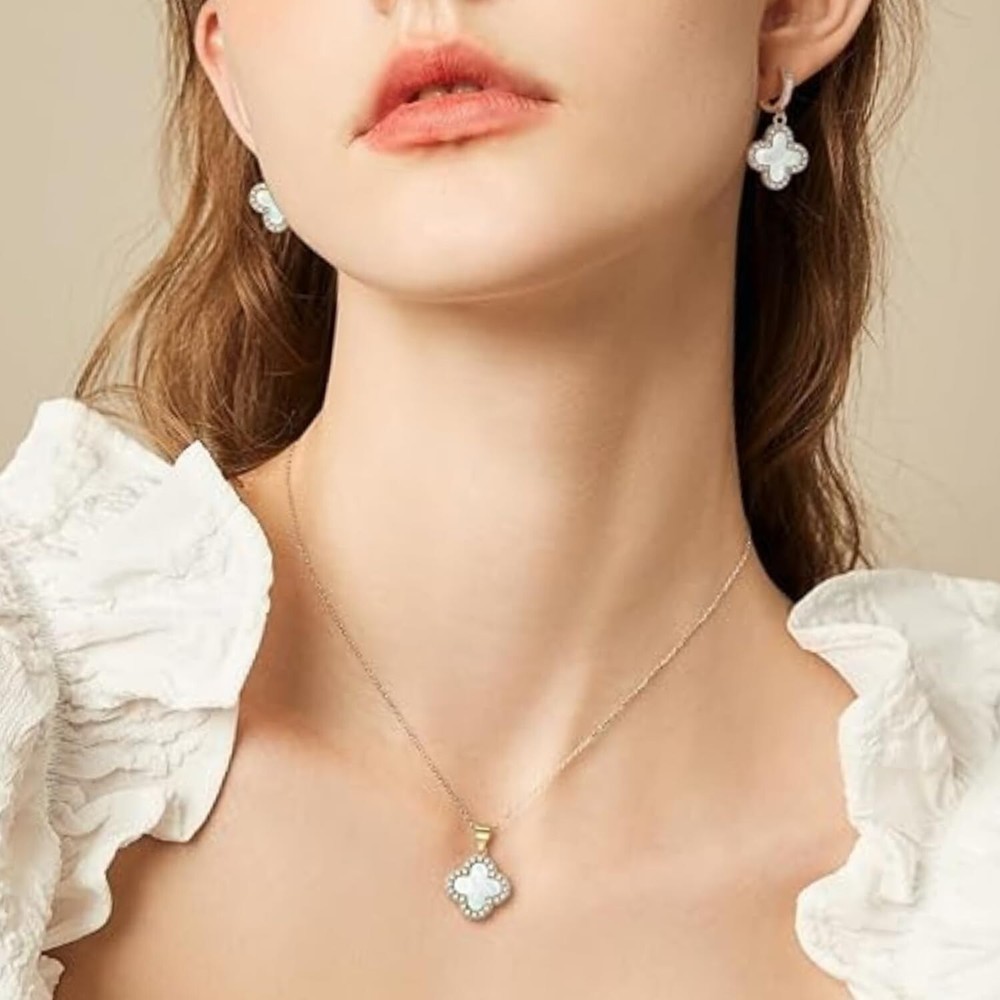 1. Absolutely love this set! The delicate studded clover necklace pairs perfectly with the chic hoop earrings—both have a gorgeous pearl accent that adds elegance. The stainless steel is high quality, doesn’t tarnish, and the lobster clasp is secure. Perfect for everyday wear or gifting—so stylish and feminine!