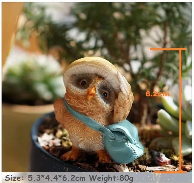 Subject: Animal Indoor/Outdoor: Indoor & Outdoor Style: Fairy garden Size: Small Care Instructions: Clean with Dampen Cloth, Easy Care Customized: No Type: Statue Dimension: Length 5.3cm * width 4.4cm * height 6.2cm Shape: Owl Brand: Unbranded Department: Adult Item Height: 2.4 inch / 6.2 cm tall Room: Any Room, Bedroom, Dining Room, Living Room, Office Pattern: Fun & Curiosity Features: Decorative, Hand-painted, Miniature sculpture, Frost-protected, Small Ornament, Weatherproof Occasion: Everyday, Birthday, Easter, Christmas, Thanksgiving Material: Polyresin, Resin Area of Use: Bookshelves, Tabletop, Patio, Desktop, Small yard or garden, Flower Bed, Lawn, Porch Color: Multicolor Theme: Animals Mounting: Free Standing