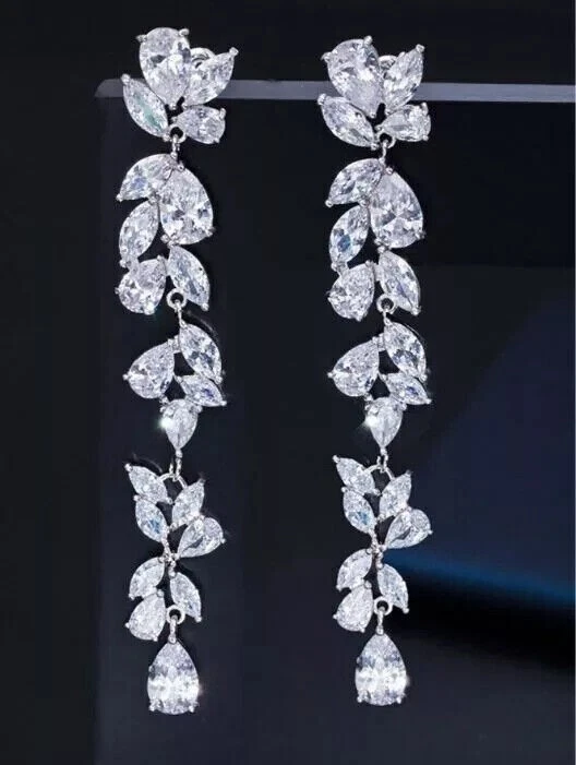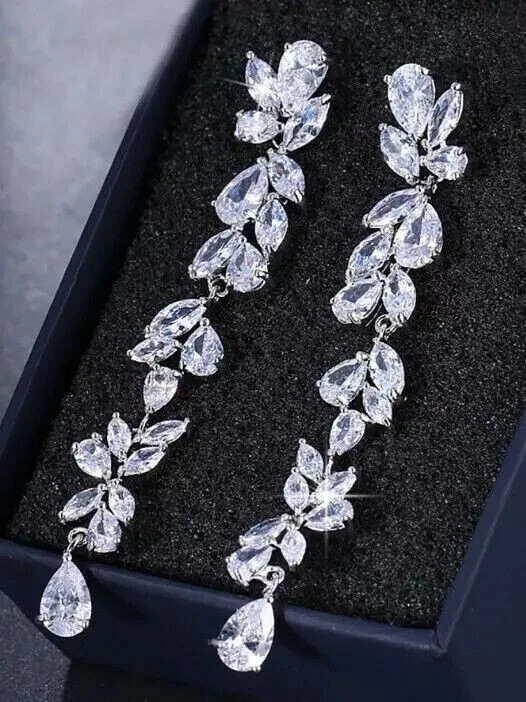 Metal Purity: 925 Setting Style: Prong Country/Region of Manufacture: India gtin13: Does Not Apply Customized: Yes Handmade: Yes Ear Area: Lobe Main Stone Color: White Closure: Push Back Shape: Round Number of Gemstones: 00 Signed: No Occasion: Anniversary, Birthday, Christening, Christmas, Confirmation/Communion, Engagement, Graduation, Mother's Day, Valentine's Day, Wedding Main Stone Creation: Simulated Cut Grade: Excellent Features: Engraved Main Stone Treatment: Not Enhanced Type: Earrings UPC: Does Not Apply Vintage: No Style: Dangle/Drop Country of Origin: United States Main Stone Shape: Pear MPN: NA Seller Notes: ““Freshly made on order with quality and buyer satisfaction. No old stocks.”” Main Stone: Simulated Diamond Secondary Stone: NA Antique: No Era: Undated Base Metal: White Gold Plated Theme: Beauty Seller Warranty: Yes Wholesale: Yes Material: Stone, Metal Color: White Personalize: No Metal: Sterling Silver Brand: sp_jewels