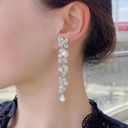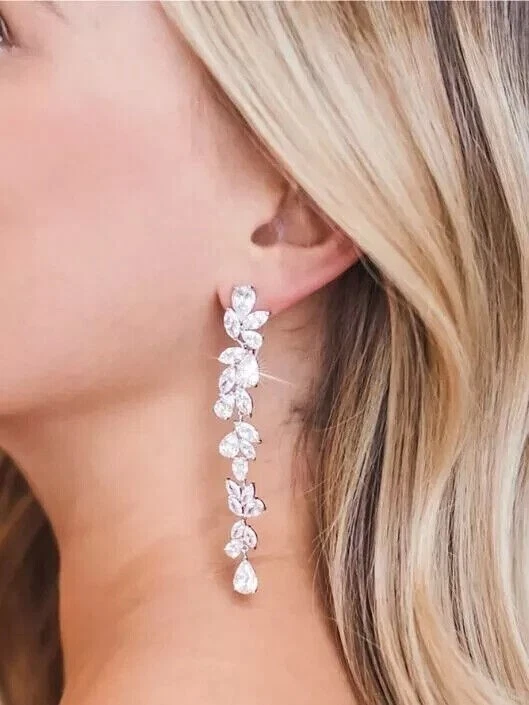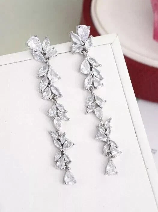 Stunning Drop Dangle Earring Pear Cut Simulated Diamond In 14k White Gold Plated